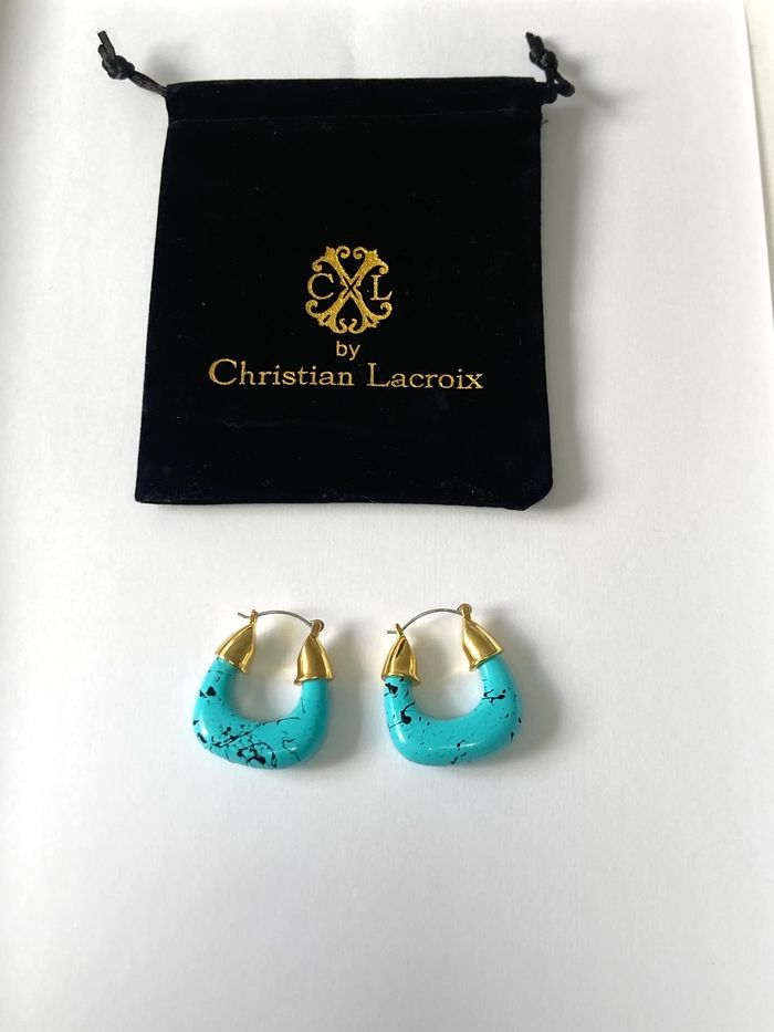 Boucles d'oreilles créoles turquoises by Christian Lacroix - photo numéro 1