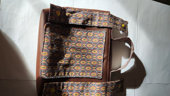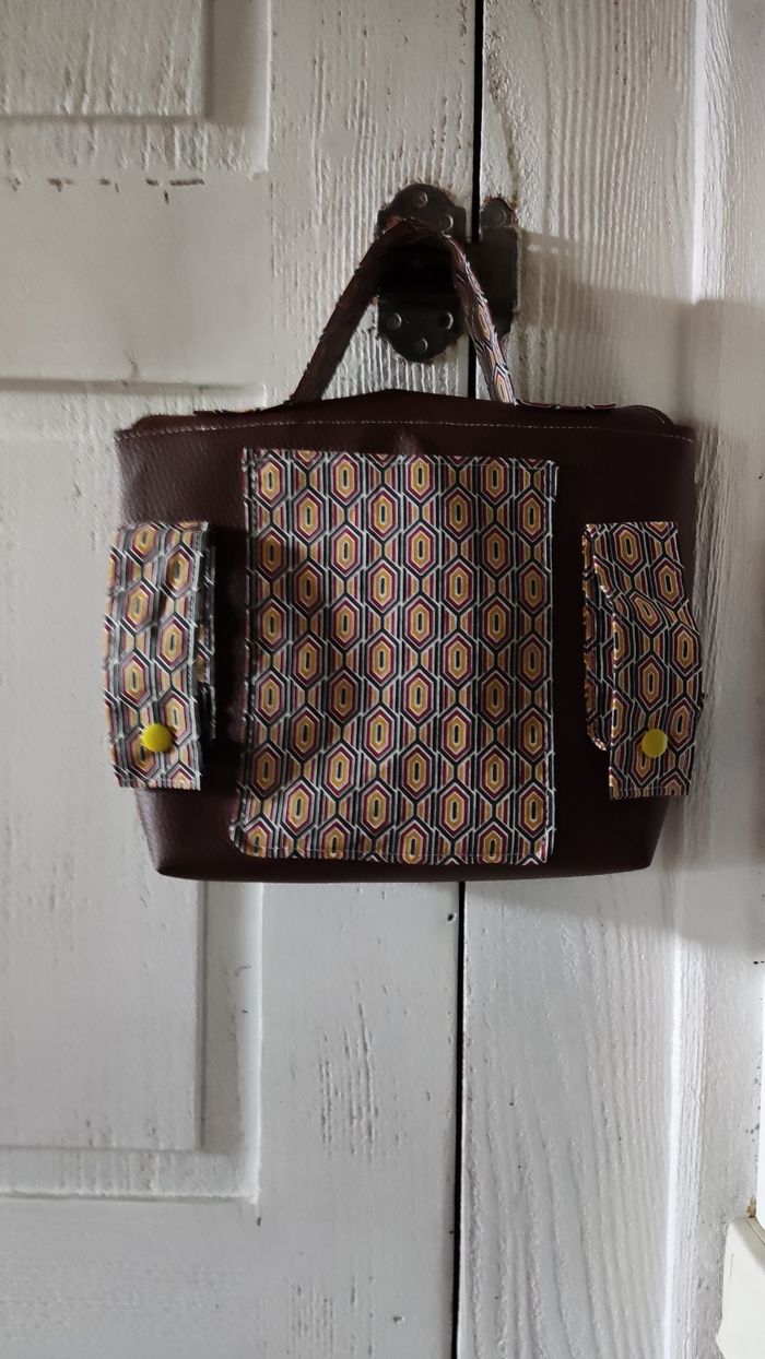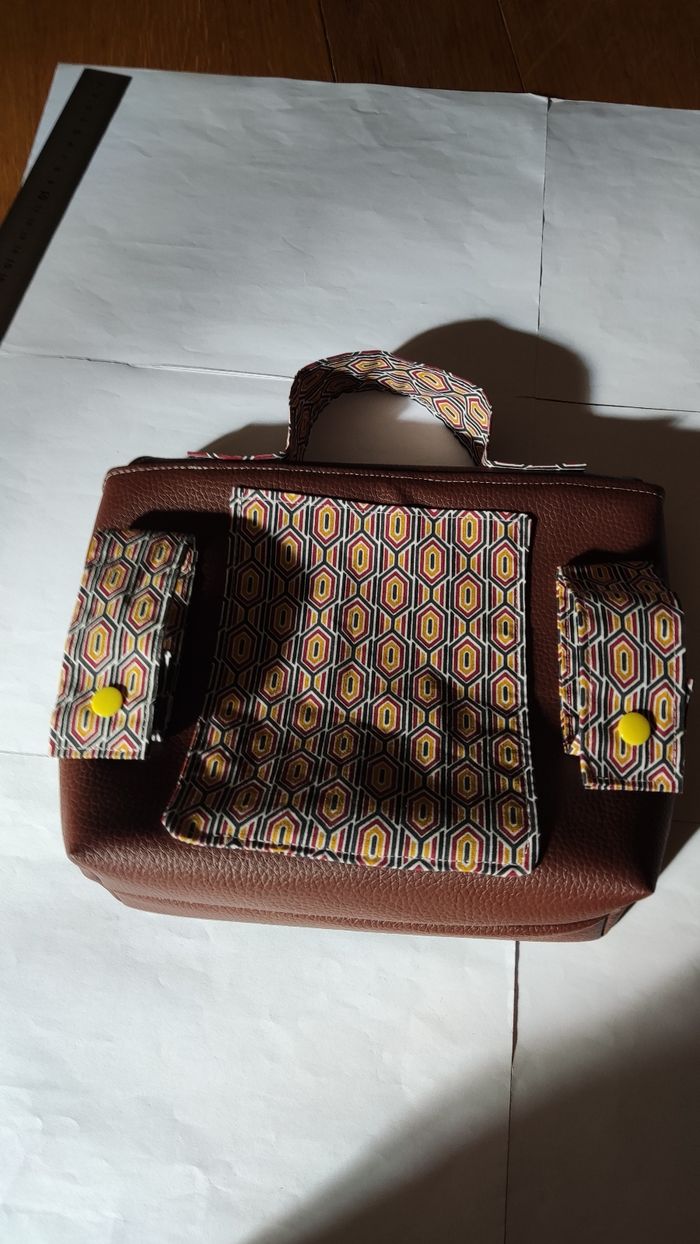 Simili cuir et coton, jamais utilisé état neuf entièrement cousu main avec du tissu recyclé