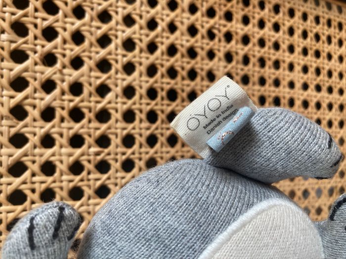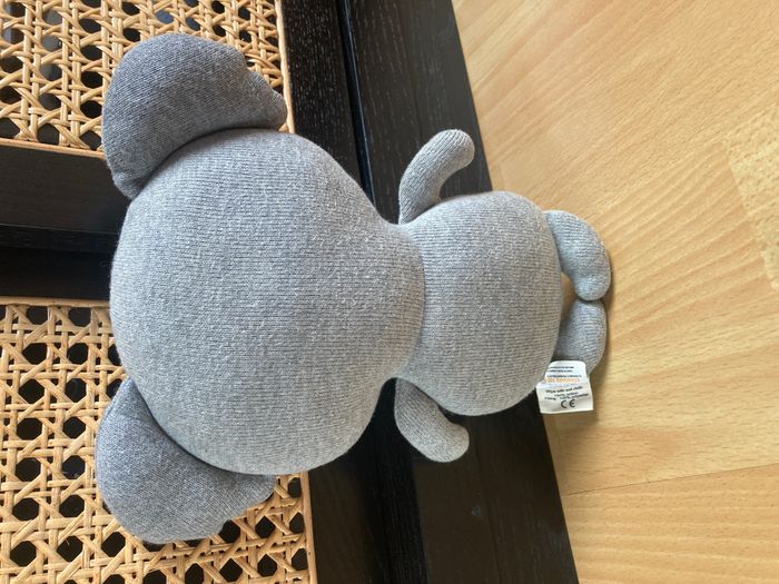 Craquant petit koala de la marque danoise Oyoy (gamme Mini). Un doudou au look nordique, doux et moderne, qui apportera une touche de tendresse dans une chambre d'enfant. Matière : 100 % coton jacquard, tricoté et cousu à la main. Dimensions : 26 x 20 x 8 cm. Coloris : Gris chiné avec de jolis détails soignés (pommette rose, nez noir). En très bon état, a servi uniquement de décoration sur une étagère. #oyoy #oyoymini #koala #peluche #doudou #decorationchambre #scandinave #nordicstyle #cotonjacquard #chambreenfant