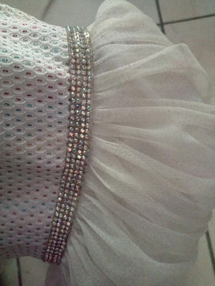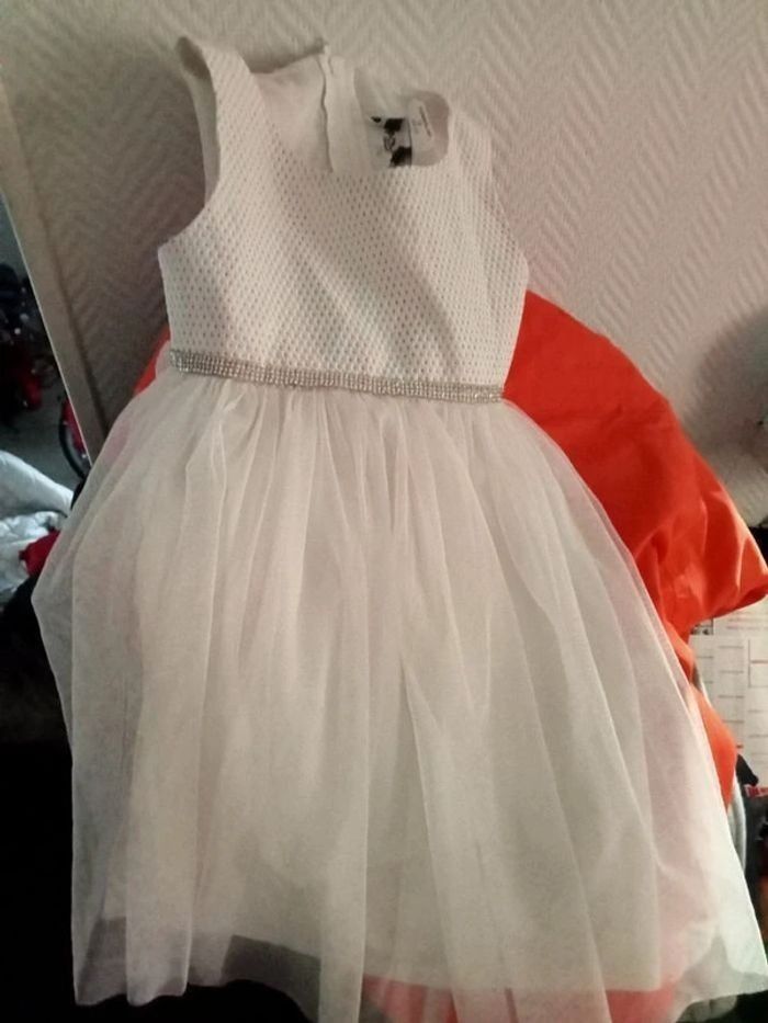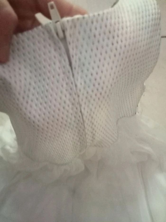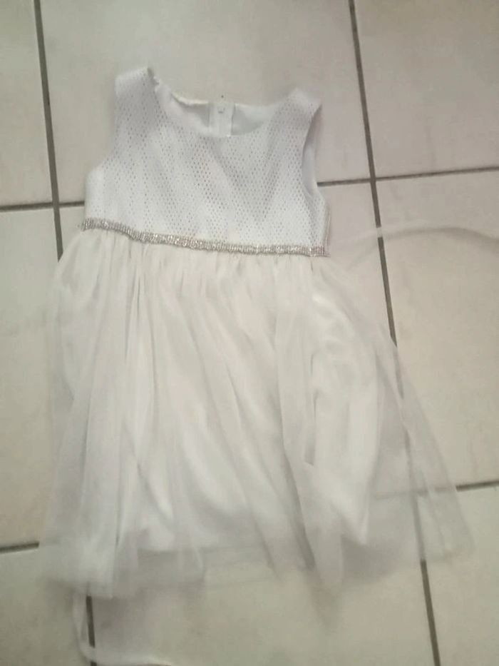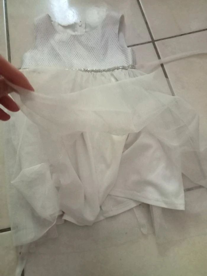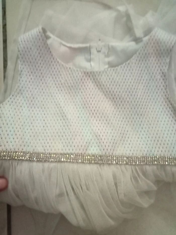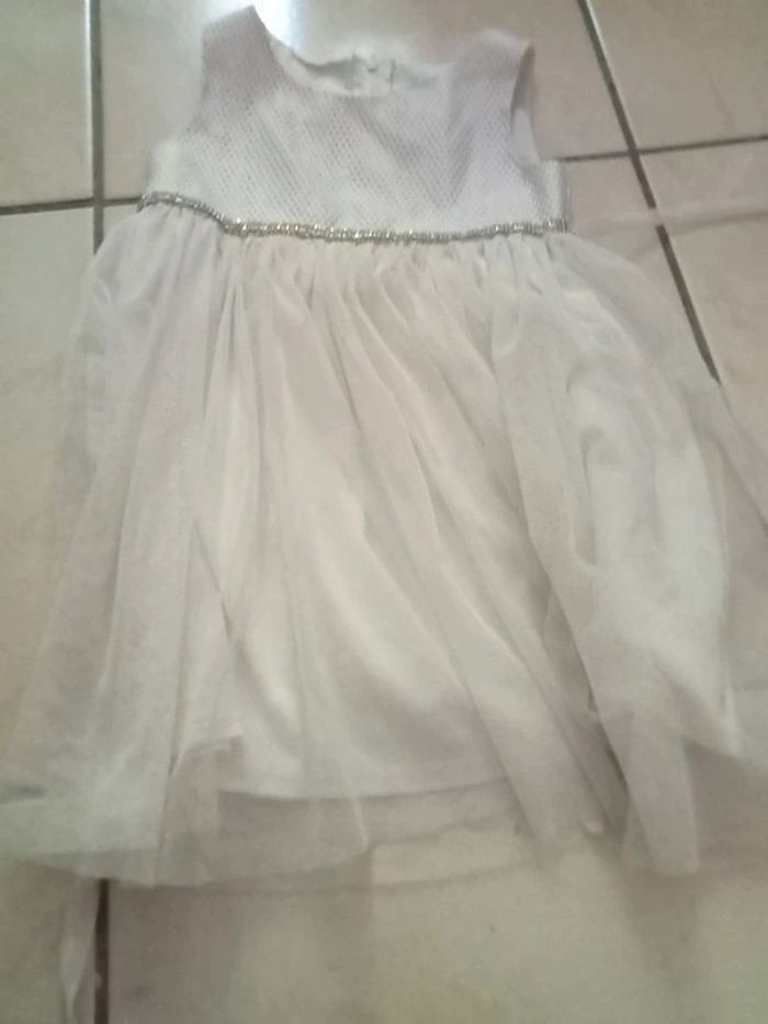 Je vends cette jolie robe de cérémonie blanche à stras pour bébé fille de 4 ans. - Type de produit : Robe - Univers : Fille - Taille : 3 ans - Marque : Autre - Couleur : Blanc - Matière : Tulle - Caractéristiques : Robe de cérémonie avec stras N'hésitez pas à me contacter pour plus d'informations.
