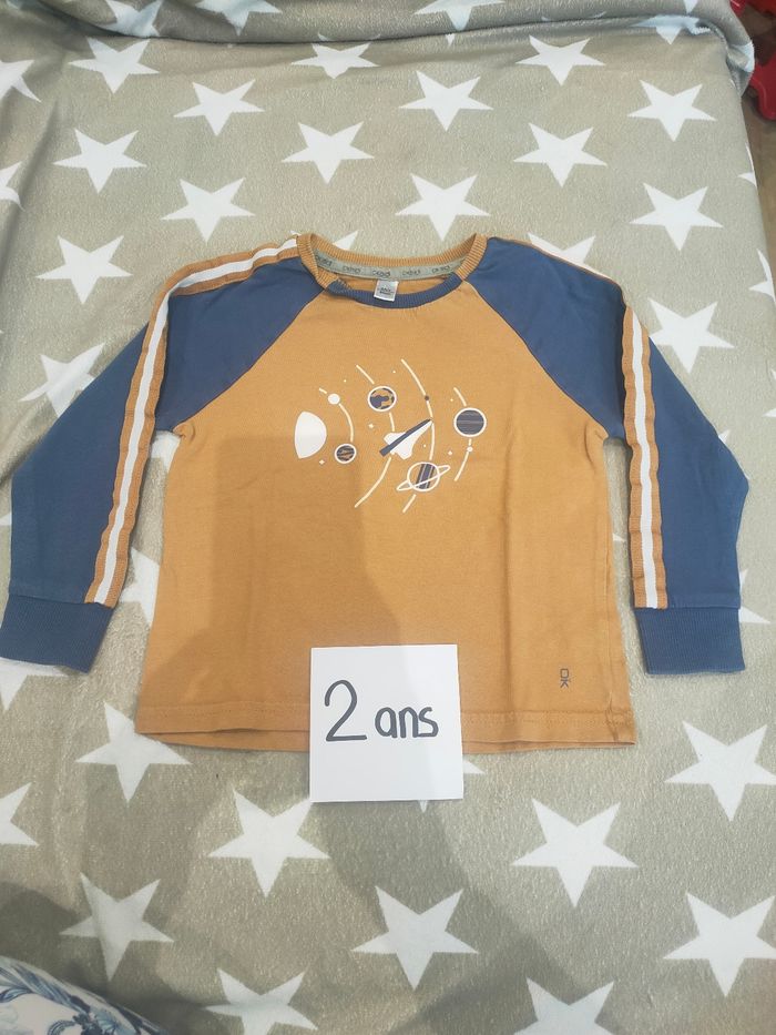 T-shirt garçon manches longues en taille 2 ans de chez okaidi, mi épais. Très bon état, sans tache ni trou. Maison non fumeur.