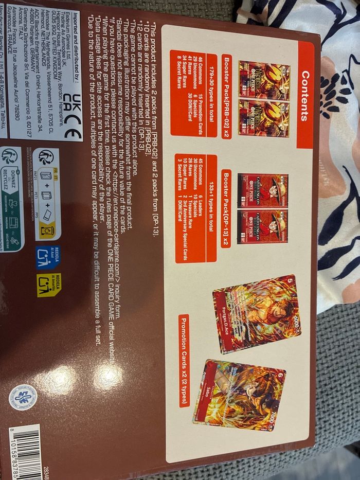 One Piece Card Game - Boîte d'illustration Vol.5 - Anglais Contenu : 4 boosters de One Piece TCG : OP-13 / PRB-02 – 2 cartes promo personnages avec Sabo & Portgas.D.Ace Langue : anglais - Neuf et emballage d'origine ! En outre, vous recevrez un Toploader BB-Toy-Trades idéal pour protéger vos nouvelles cartes