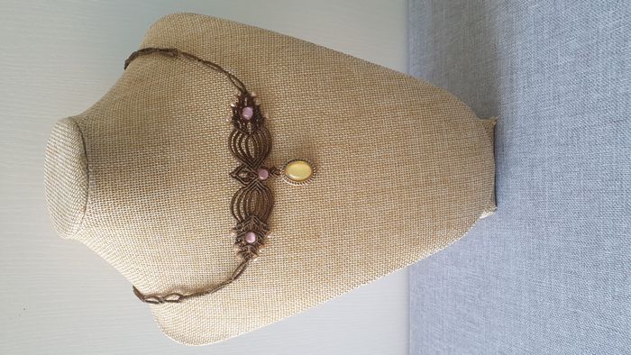Collier Ras de Cou Fabriqué à la main, ce collier est conçu en micro-macramé, une méthode de tressage avec des fils de coton cirés. Il sera envoyé dans une pochette organza, avec la possibilité d'un emballage pour offrir en cadeau sur demande sans coûts ajoutés.