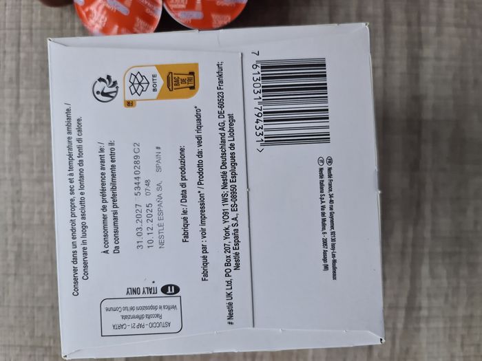 📝 Lot de 23 dosettes Dolce Gusto Le lot est composé de 7 dosettes sans emballage (seront envoyés dans un emballage tout de même mais pas celui d'origine) et une boite neuve non ouverte de 16 dosettes. La date de péremption est indiqué sur les photos. Vente via Beebs ou main propre uniquement