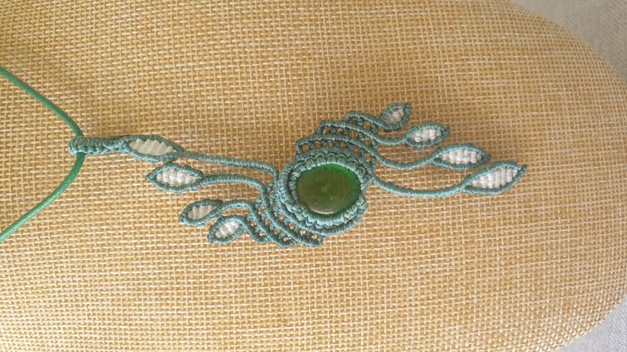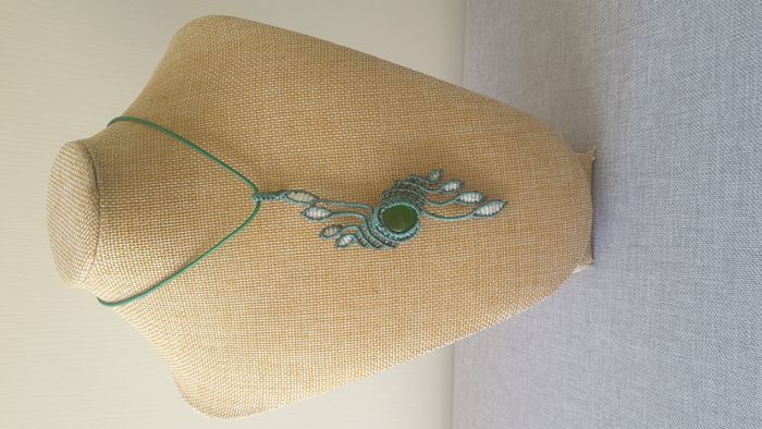 Fabriqué à la main, ce collier est conçu en micro-macramé, une méthode de tressage avec des fils de coton cirés. Il sera envoyé dans une pochette organza, avec la possibilité d'un emballage pour offrir en cadeau sur demande sans coûts ajoutés.