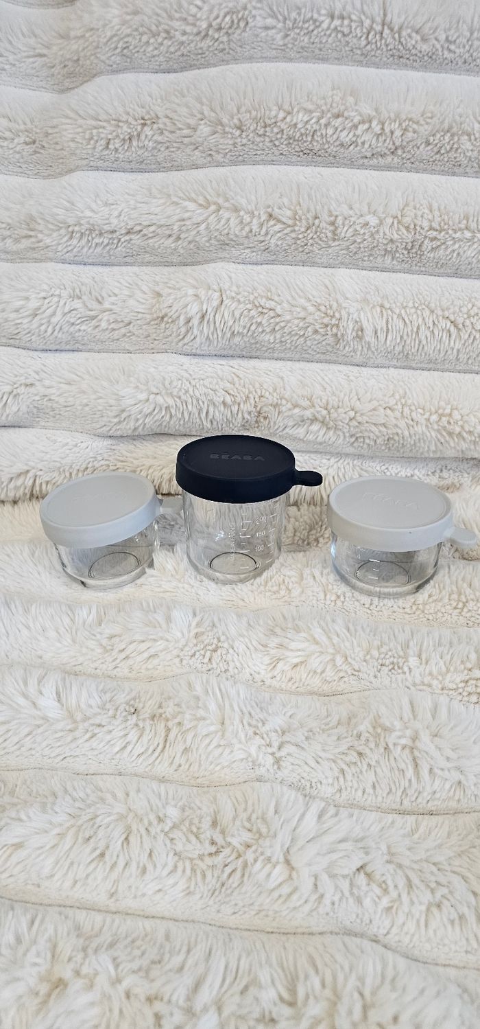 Lot de 3 pots en verre Béaba ☆ 2 pots 150ml. ☆ 1 pot 250ml. Tres bon état