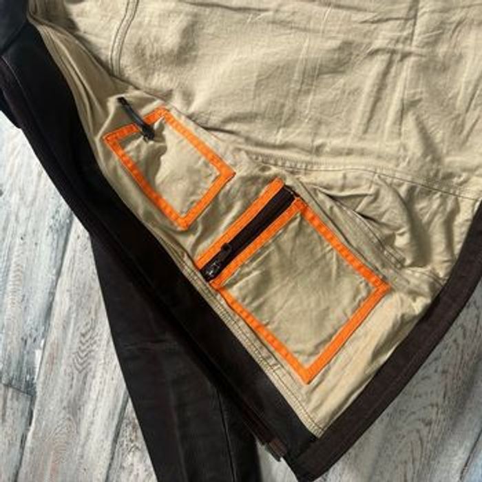 Cette veste en cuir Parajumpers est en parfait état, elle a été très peu portée et n'a donc aucun défauts. Plus de détails sur la pièce... → Couleur Marron & Orange → Taille M Oversize → Le logo Prajumpers est sur la manche de gauche → Plus d’une dizaine de poches sont présentes → Clips en métal au niveau du col avec l’inscription « PJS » → Les matériaux sont visibles sur les deux dernières photos
