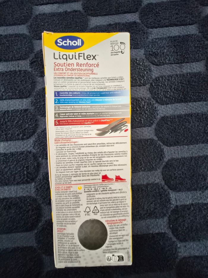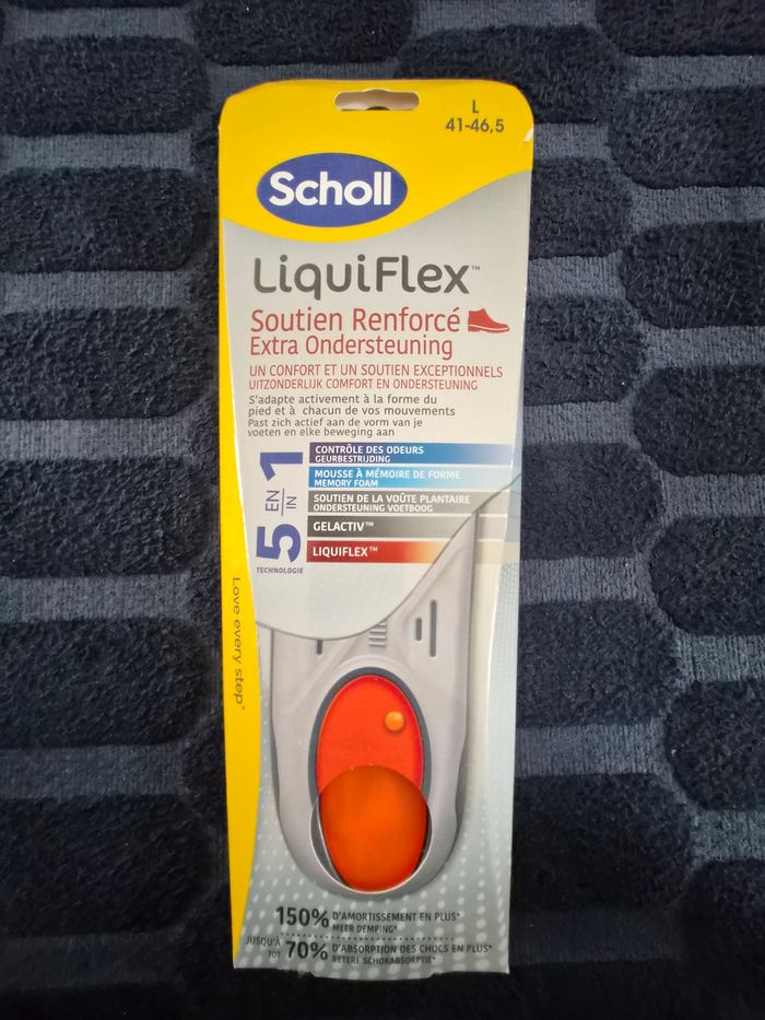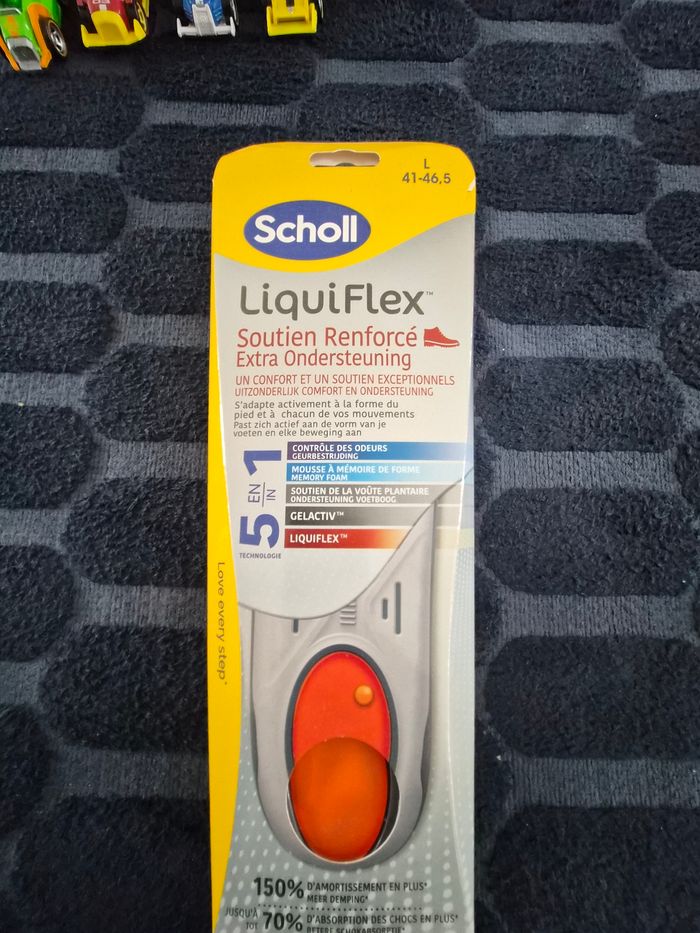 Semelles Scholl Neuves - Confort Inégalé ! 🏃‍♂️✨** **Découvrez le confort et le soutien que vous méritez chaque jour !** **Caractéristiques :** - **Conformité Optimale** : ces semelles s'adaptent parfaitement à la forme de votre pied et accompagnent chacun de vos mouvements, vous offrant ainsi un confort sur mesure. - **Contrôle Efficace des Odeurs** : Profitez de vos activités sans soucis grâce à notre technologie qui limite les odeurs désagréables. - **Mousse à Mémoire de Forme** : Ressentez l'innovation sous vos pieds avec une mousse conçue pour épouser la forme de votre voûte plantaire, garantissant un soutien exceptionnel. - **Technologies Avancées** : - **GELACTIV™** : Pour un amorti supérieur et une absorption des chocs. - **LIQUIFLEX™** : Pour flexibilité et confort de marche. **Taille adaptable** : Convient aux pieds de taille 41 à 46,5. Il vous suffit de découper la semelle à la taille souhaitée pour un ajustement parfait. **Pourquoi attendre ?** Offrez-vous poyr Noel, le soutien dont vous avez besoin pour vivre pleinement chaque journée. 👉 **Commandez maintenant et commencez à marcher vers le confort !** #sport #ville #quotidien