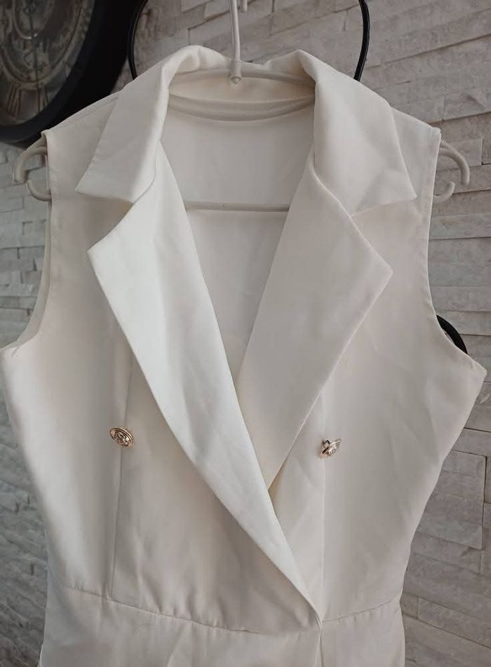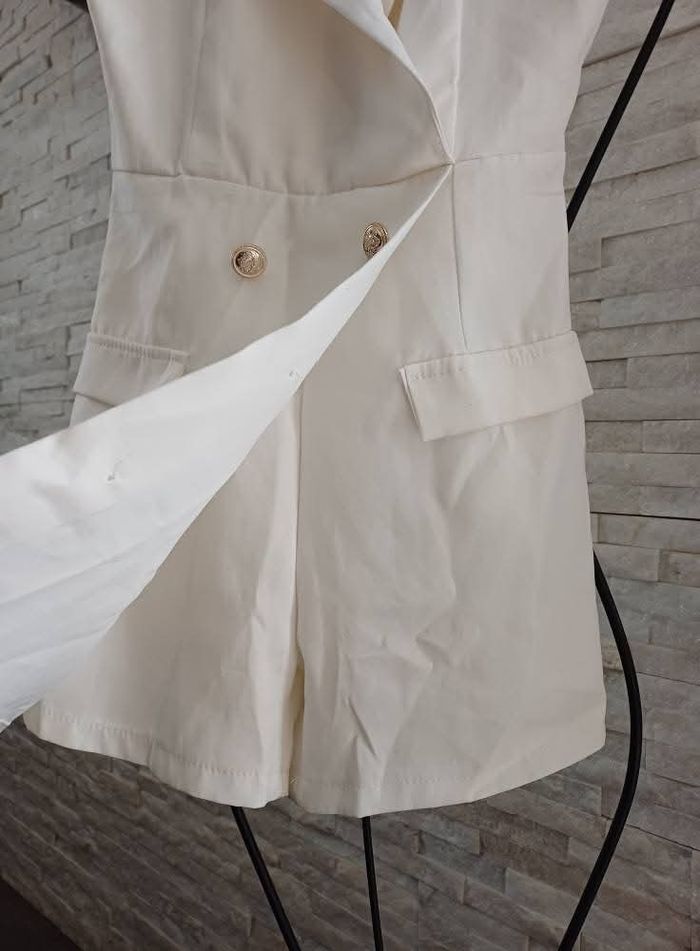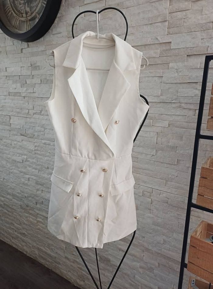 Style robe tailleur Boutons dorés de décoration Fausse poche Grand col Fermeture éclaire Taille grand (38/40) Porté une fois