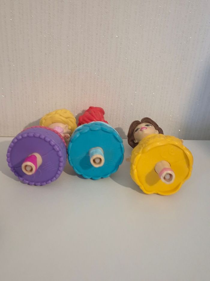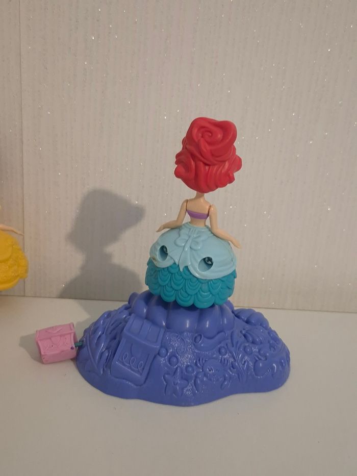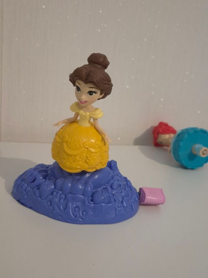 🏰joli lot Disney Princesses 3 Figurines "Tournoiement Féerique" (Hasbro) ​ lot comprenant Ariel, Belle et Raiponce avec leur base magique tournoyante. ​✨ Le petit plus : La base mauve fonctionne comme une toupie ! Il suffit de clipser une figurine dessus et de tirer sur le petit cordon (le coffre au trésor rose) pour faire danser et tourbillonner la princesse. Très amusant pour les enfants ! • ​Marque : Hasbro / Disney. • ​Contenu : 3 figurines + 1 base de lancement. • ​État : Bon état, le mécanisme de tirage fonctionne parfaitement. ​🏠 Maison non-fumeur. 📦 Envoi rapide. ✨ Lots possibles : Regroupez vos achats pour économiser ! 👉 Cliquez ici pour voir mes autres jouets : #ribeirozazajouets ​#disney #princessesdisney #hasbro #ariel #belle #raiponce #jouetinteractif #jouettoupie #danseuse #minipoupee #ribeirozazajouets #ideecadeau