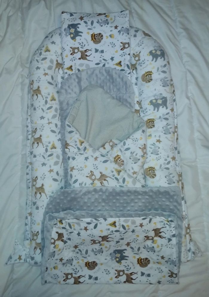 Réducteur de lit avec son petit fond . Nid d'ange Petite couverture Petit coussin Comme neuf