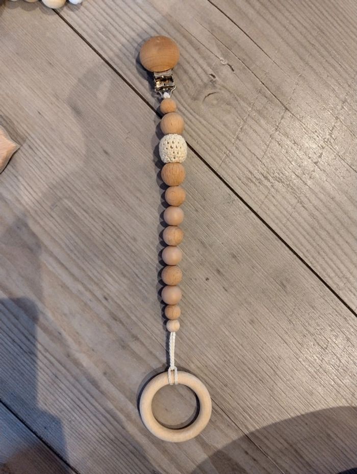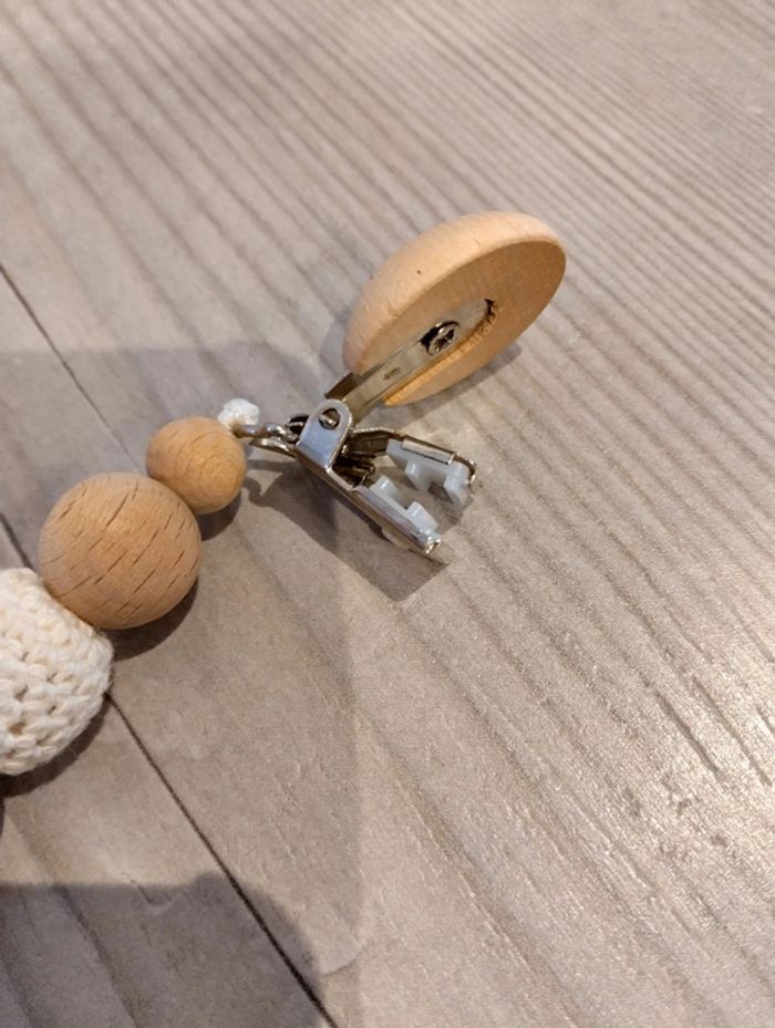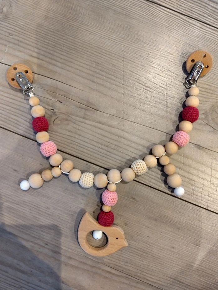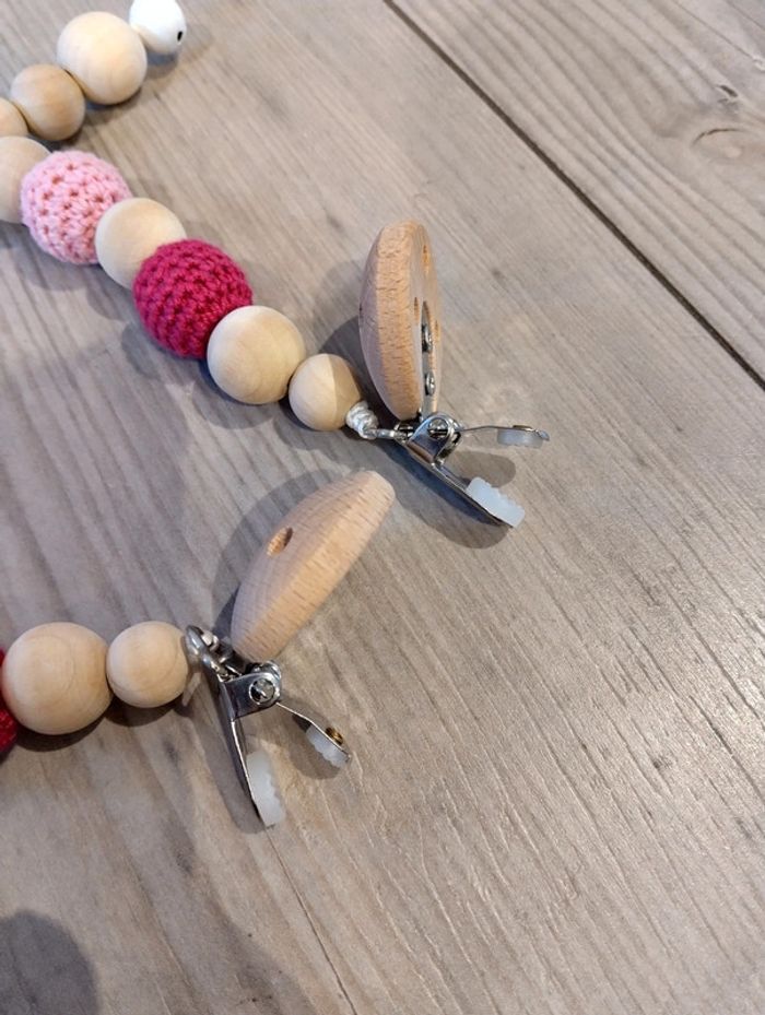 Lot de 2 jouets d'éveil en bois Avec clips pour être attachés au canopy de la poussette pour l'éveil de bébé Très bon état car peu utilisés