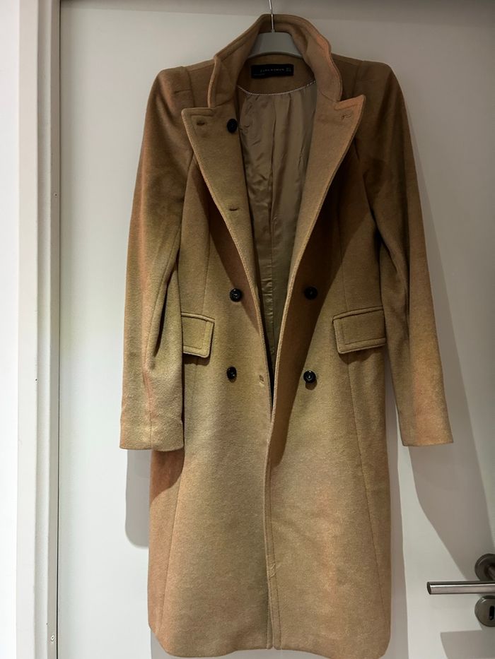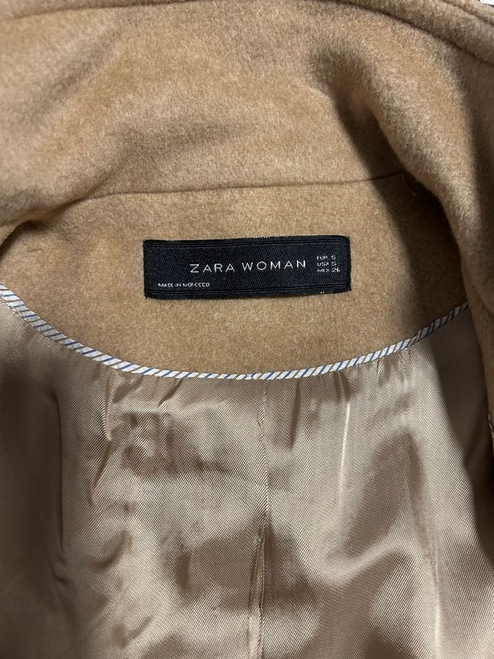 Très beau manteau Zara Women en très bon état, couleur camel. Extérieur : 70% laine, 18% polyamide et 12% angora, intérieur 100% viscose. Hauteur total : 93cm