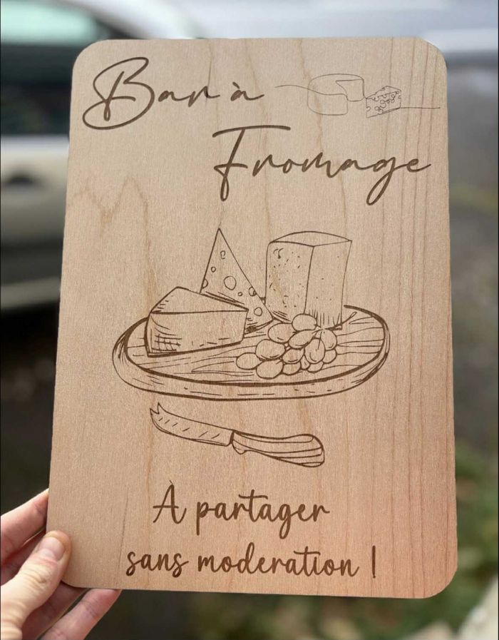 Affiche en bois au format A4, gravée avec finesse pour mettre en valeur votre bar à fromage. Son bois naturel, avec ses textures et nuances chaleureuses, s’intègre parfaitement à l’atmosphère conviviale et gourmande de votre événement. Le message gravé, raffiné et appétissant, guide vos invités vers cette dégustation savoureuse, leur indiquant qu’ils peuvent se servir et profiter des différentes variétés proposées. Placée au centre de l’espace dédié ou sur un chevalet à proximité, cette affiche devient un point de repère élégant, attirant l’œil tout en participant pleinement à l’ambiance chaleureuse du lieu. Elle invite vos convives à découvrir et savourer ce coin gourmand à leur rythme. Chaque affiche est unique et fabriquée avec un matériau naturel. L’article peux présenter des défauts visuel comme des rainures ou des noeuds. Chevalet en suppléant pour 2e