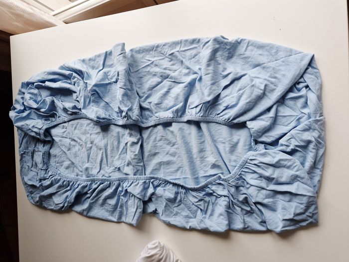 vends un lot de 3 draps housse bleu ciel et blanc pour petit lit et lit parapluie en trés bon état dimensions: 60X120 cms je vends d'autres affaires, n'hésitez pas à regarder ou me demander si besoin