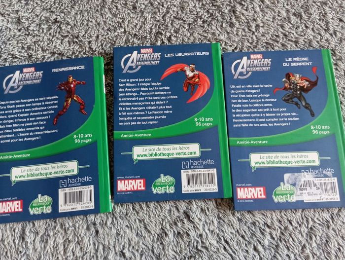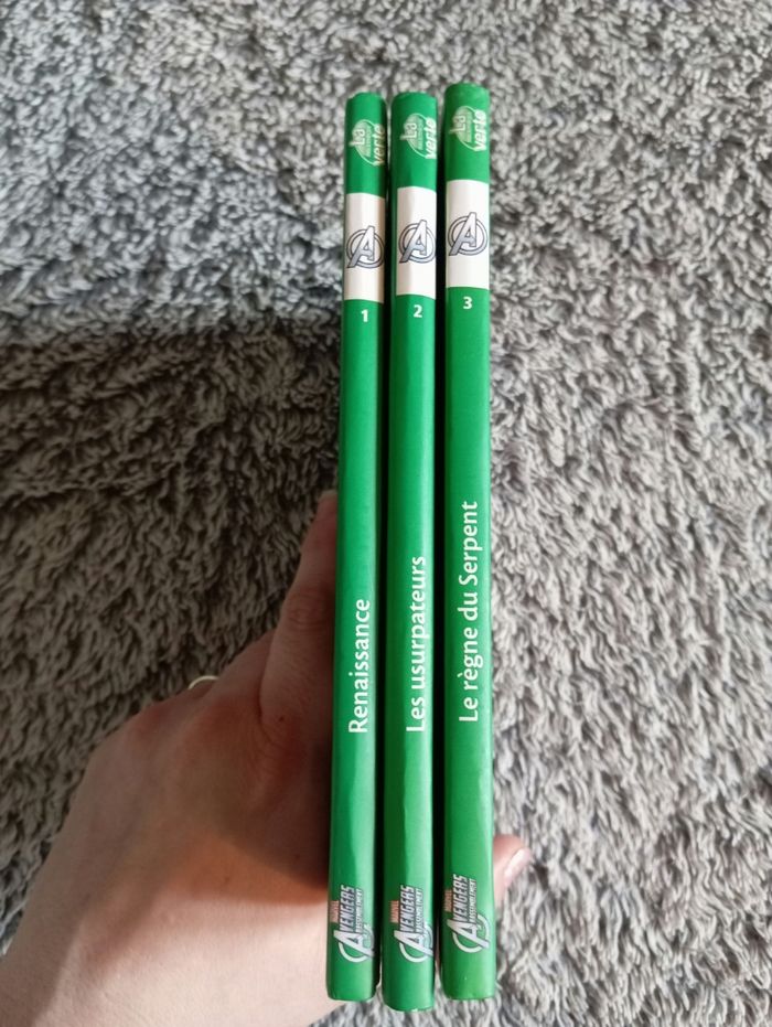 Lot de 3 livres bibliothèque verte avengers rassemblement 1 Renaissance 2 les usurpateurs 3 le règne du serpent Très bon état
