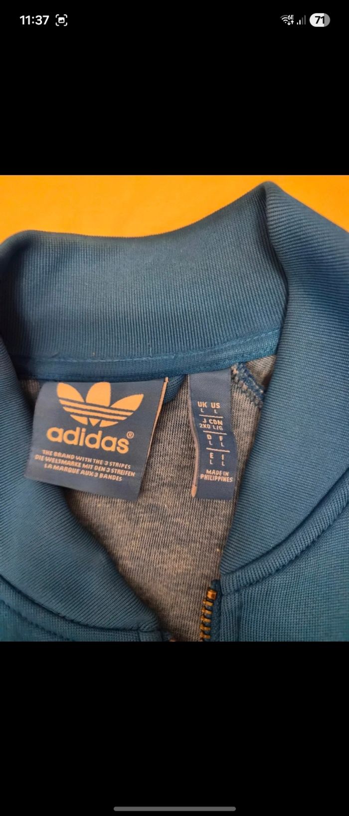 Veste Adidas bleue ... Description *Titre: Veste Adidas Homme -Taille L** **Description :** Je mets en vente cette magnifique veste Adidas de couleur bleue, taille L. Idéale pour le sport ou pour un look décontracté. **État :** Comme neuve, très peu portée **Marque :** Adidas **Détails : ** Zip complet Poignets et taille élastiques Rayures emblématiques sur les manches #adidasoriginals #adidasvintage
