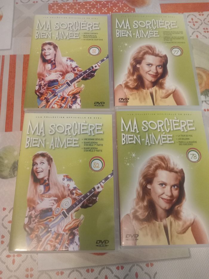 4 DVD de la série ma sorcière bien-aimée Numéro 51, 52, 77 et 78 1 DVD contient 3 épisodes En très bon état