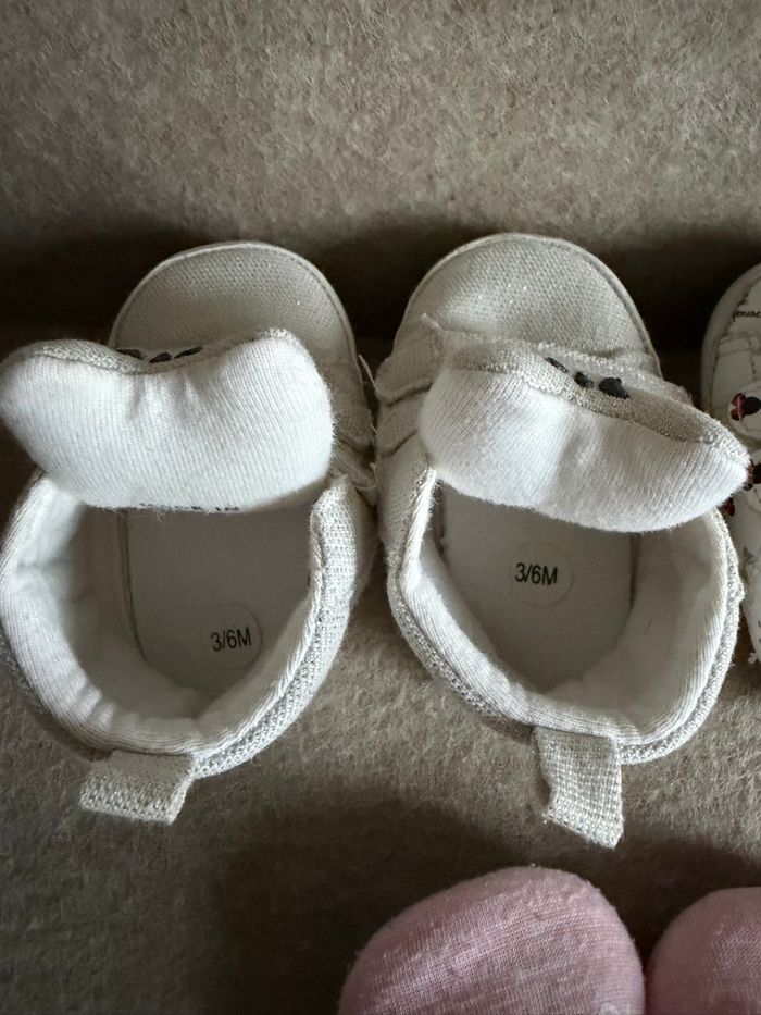🎀 lot de 3 paires de chaussures / chaussons bébé 🎀 chat / Minnie Disney 🎀 taille 3/6 mois 🎀 voir photos