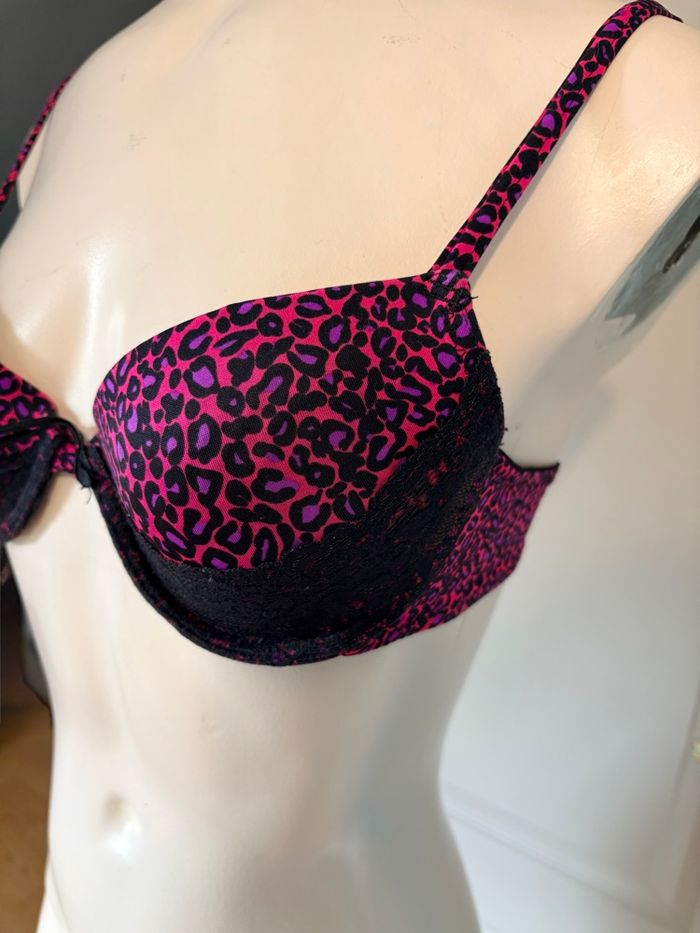 Soutien-gorge noir violet/rose léopard – 90B – Armatures & Rembourrage – TBE - photo numéro 3
