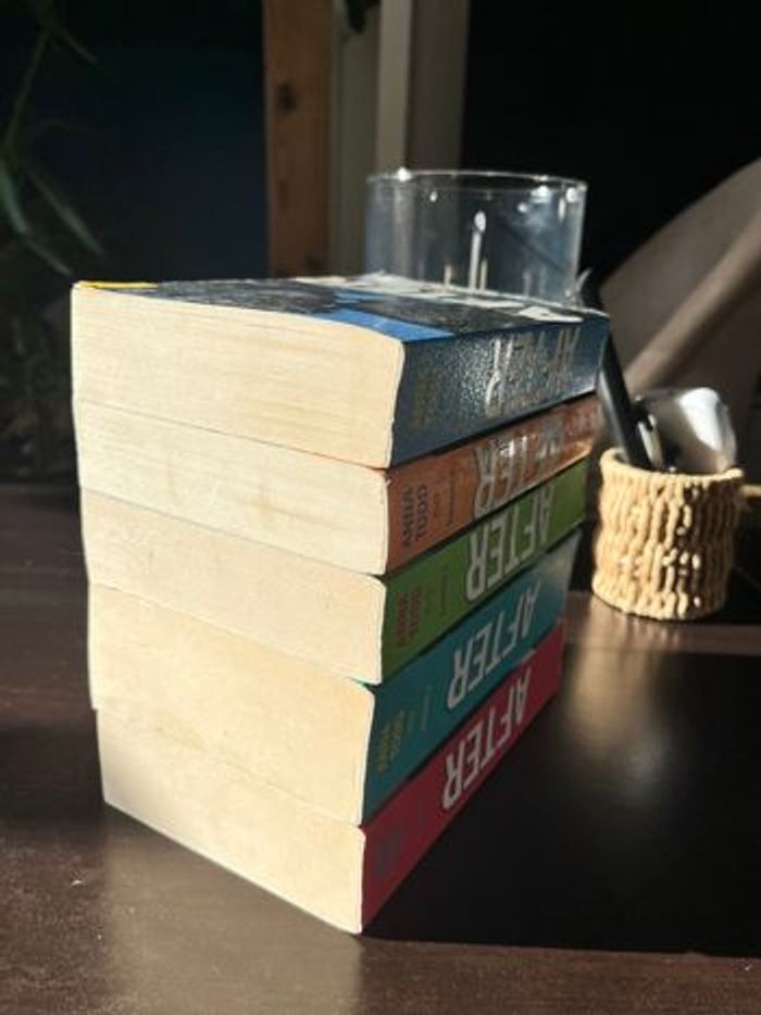 vend 5 livres de la saga After, les deux dernier sont une édition collector à paillettes. format broché