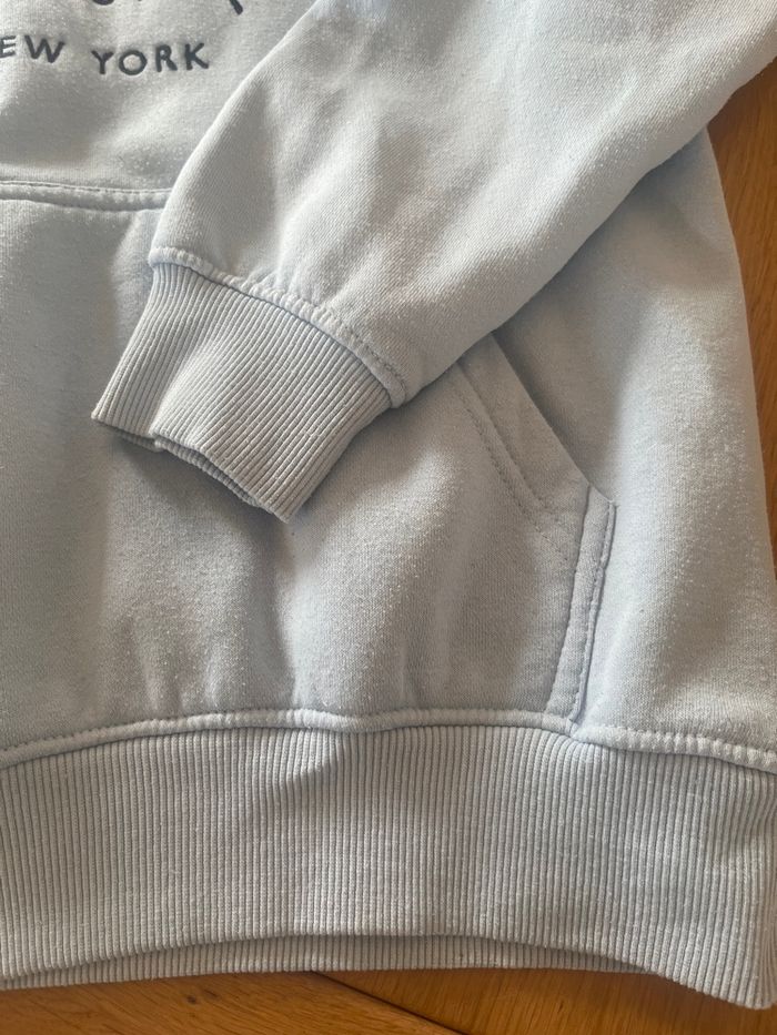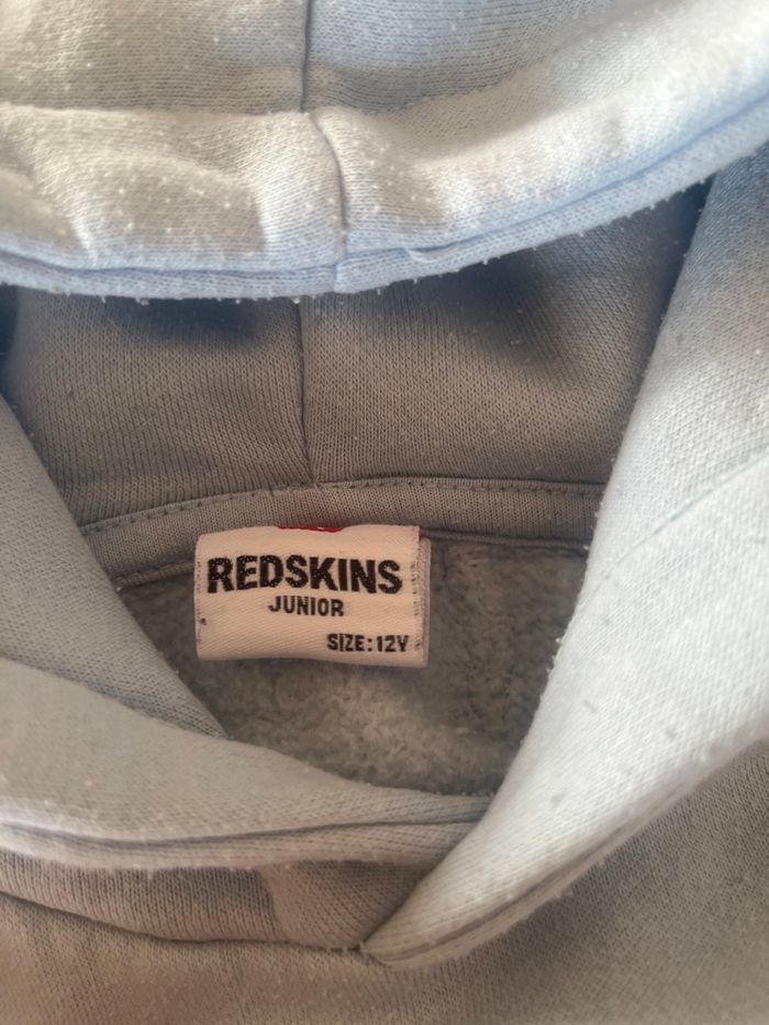 Sweat à capuche bleu ciel de la marque redskins en 12 ans En bon état général ni trou ni tache Présence de qqs bouloches