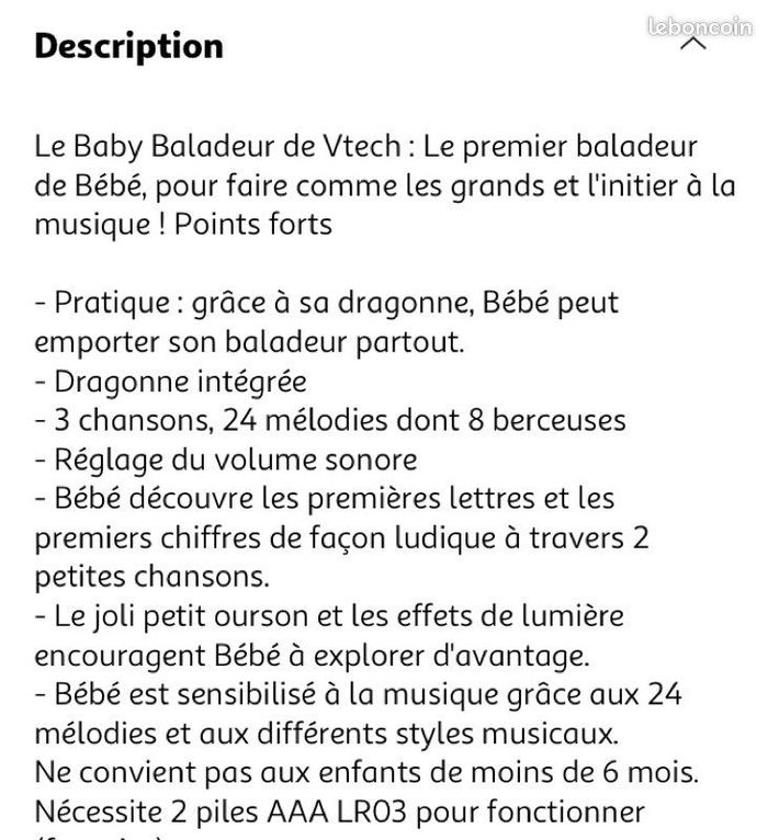 Jouet musical pour bébé à partir de 3 mois Voir description pages 3-4 Piles non fournies, fonctionne parfaitement