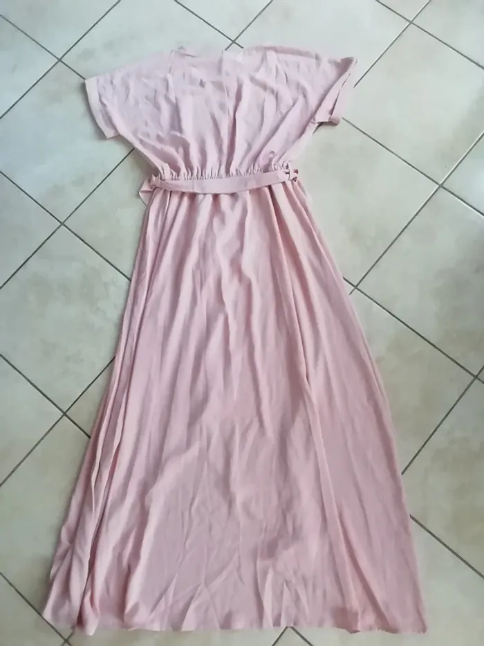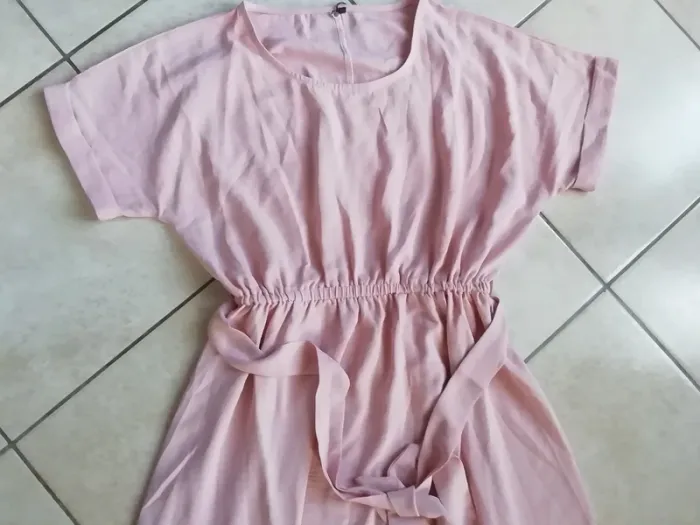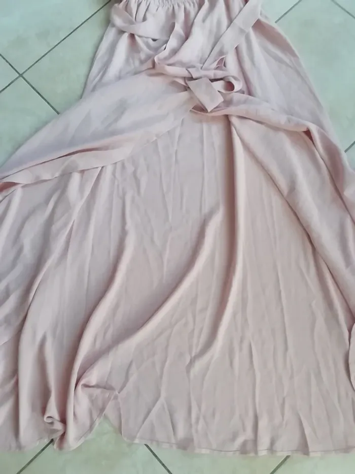 DE COULEUR ROSE CLAIR. MATERE FLUIDE ET BIEN RETOMBANTE. BAS OUVERT GENRE PORTEFUILLES, LEGEREMENT PLUS COURTE DEVANT. IDEALE FETES, CEREMONIES, MARIAGES....TAILLE S. ETAT NEUVE CAR PORTEE UNE SEULE FOIS, JUSTE QUELQUES HEURES A UNE CEREMONIE!! LONGUEUR TOTALE (voir dernière photo) : env cm.