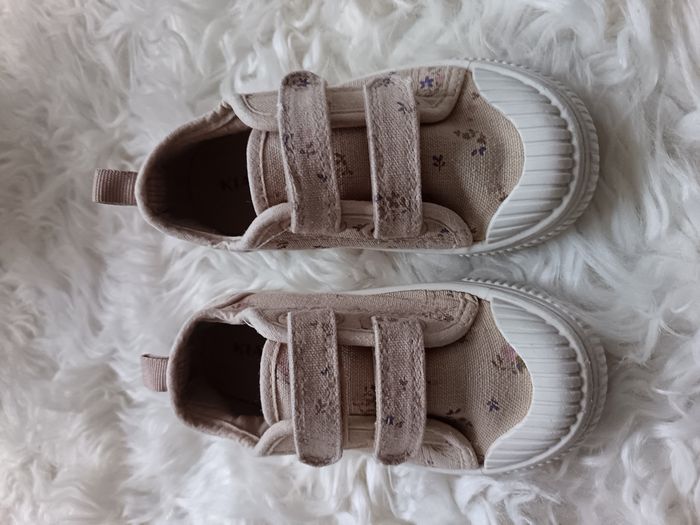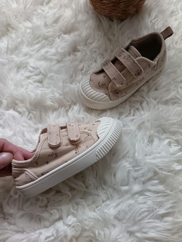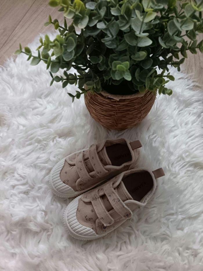 Bonjour, Je vend ces baskets à scratch Couleur beige motif fleuri Acheté chez Kiabi Taille 25 Très bon état