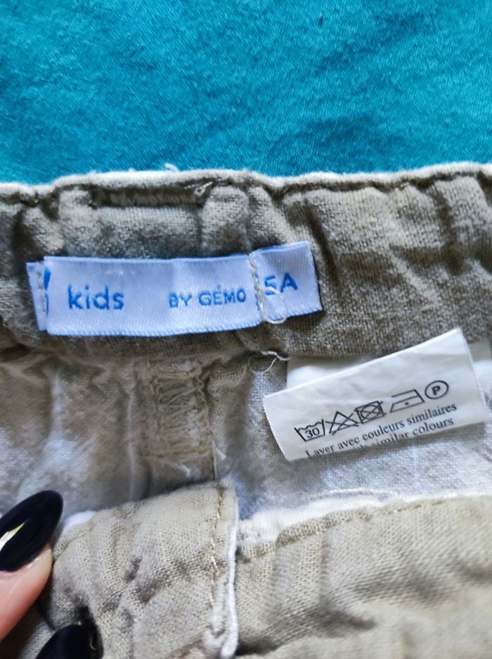 Pantalon très léger qui peut se mettre en pantacourt. Taille 5 ans, marque Gémo. Légère tâche.