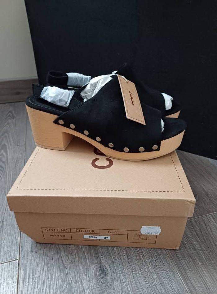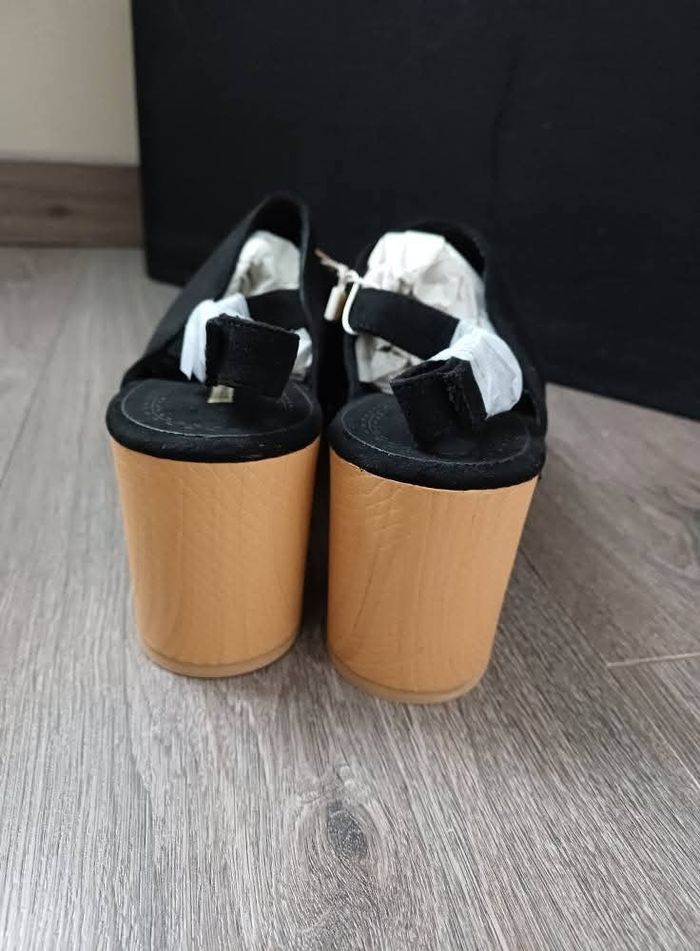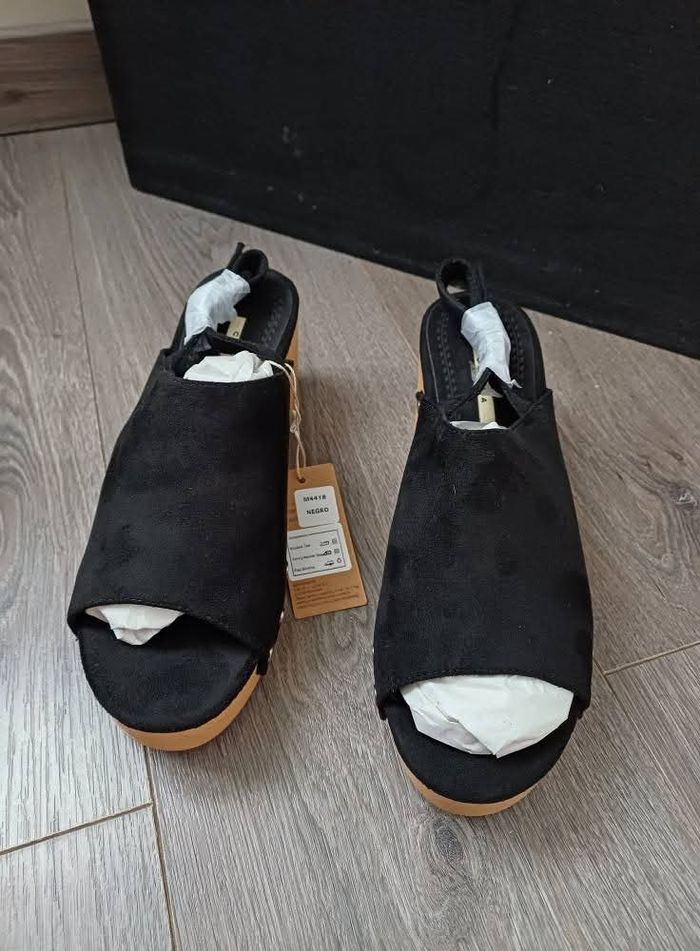 Style sabots à talons Effet bois Matière genre daim suédine Brides réglables