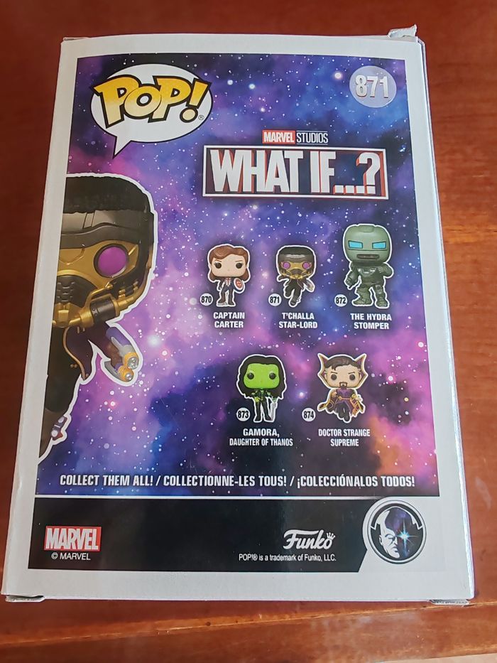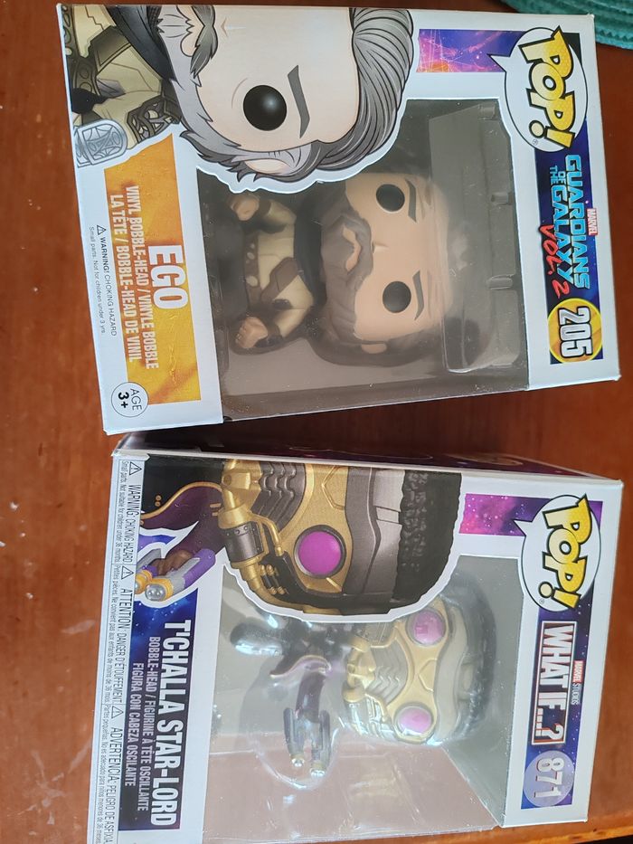 2 figurines funko pop de l'univers des gardiens de la galaxie. - T'challa star-lord (Marvel studio, what if...? 871) Manque le support - Ego (Guardians of the Galaxy vol. 2, 205) Parfait état 7eu la figurine 10eu les deux Envoie possible