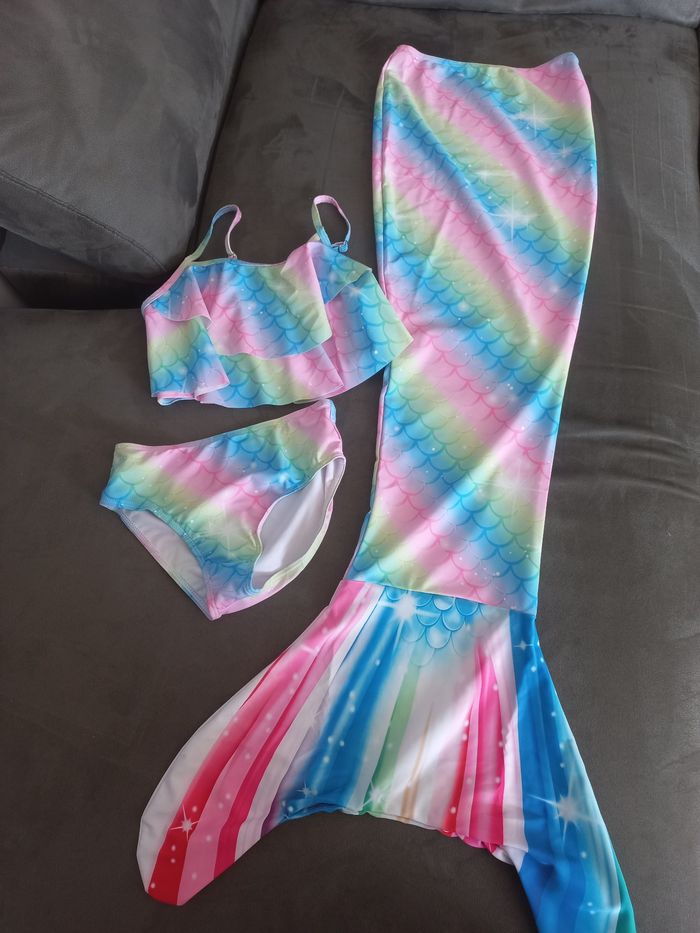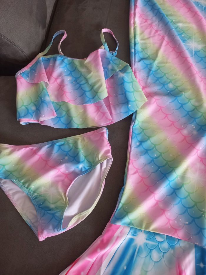 Ensemble maillot de bain 2 pièces déguisement avec queue de sirène 6 ans - photo numéro 1