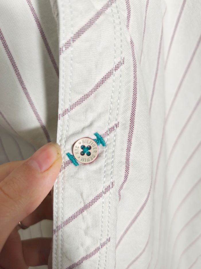 Chemise homme Tommy Hilfiger – Crème à rayures violettes – 100% coton – Taille XL – Très bon état - photo numéro 7