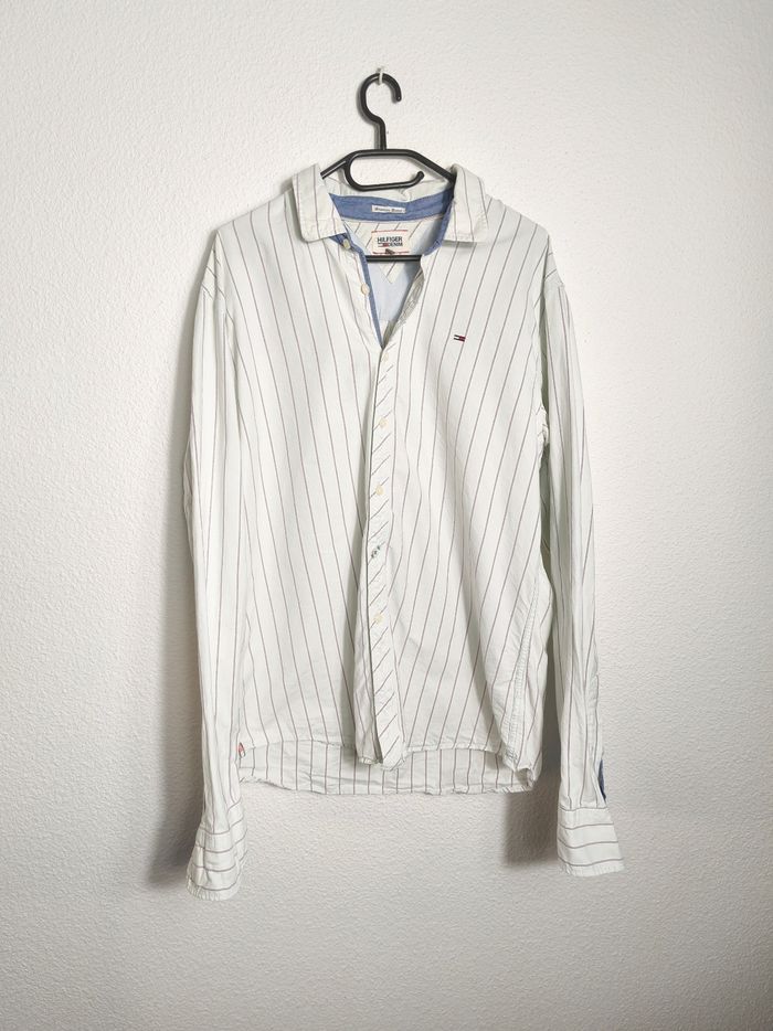 Chemise homme Tommy Hilfiger – Crème à rayures violettes – 100% coton – Taille XL – Très bon état - photo numéro 1