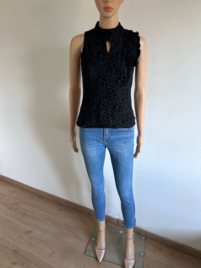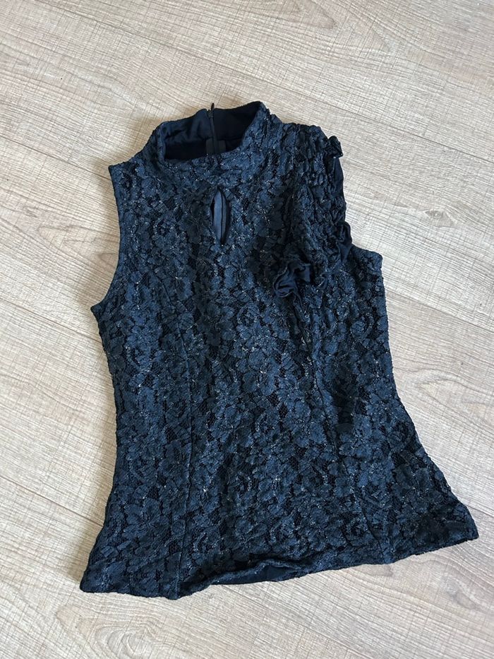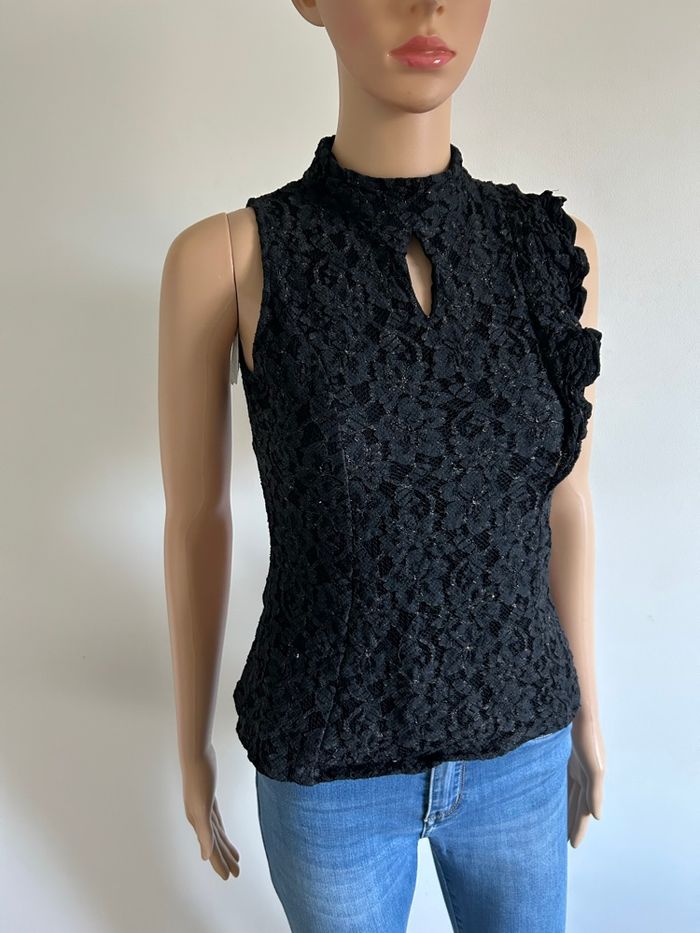 Haut noir et doré en dentelle Morgan taille 38 bon état (taille petit) - photo numéro 10
