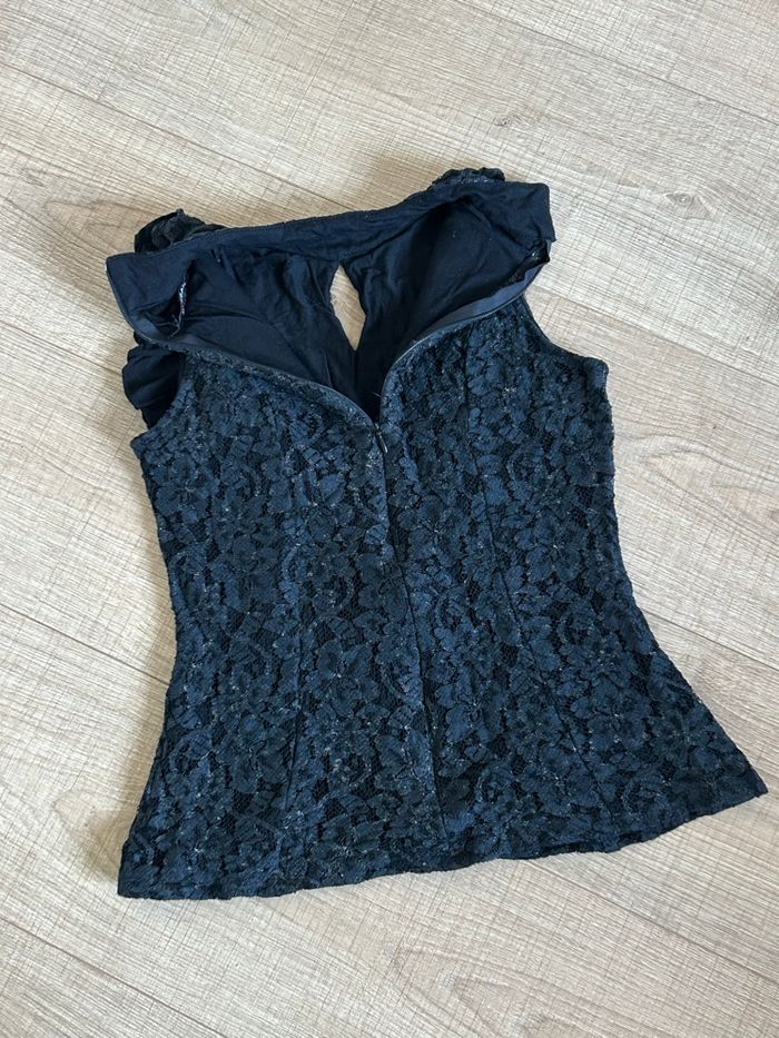 Haut noir et doré en dentelle Morgan taille 38 bon état (taille petit) - photo numéro 7