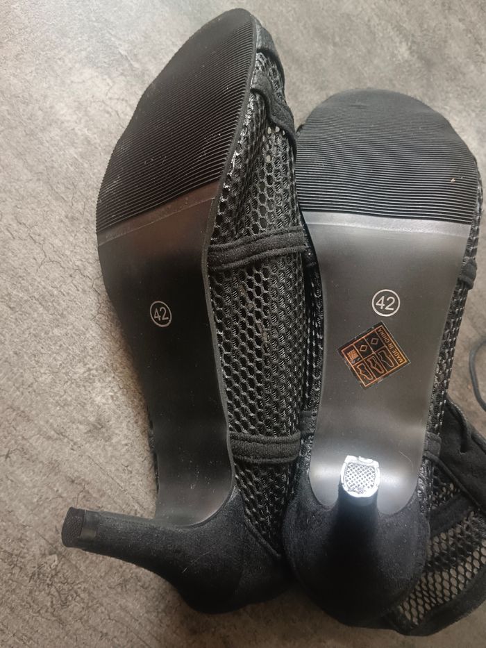 Chaussure escarpin petit talon pour danse élégante souple bout ouvert a trou se toute la chaussure voir photos marqué taille 42 correspond plus à un 40 /41 couleur noir