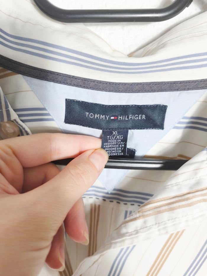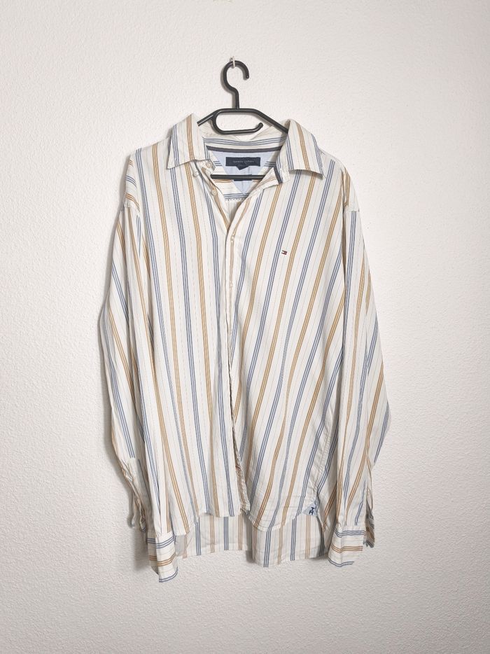 Chemise homme à rayures Tommy Hilfiger – Blanc, ocre & bleu – Taille XL – Très bon état - photo numéro 1
