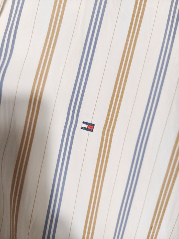 Chemise homme à rayures Tommy Hilfiger – Blanc, ocre & bleu – Taille XL – Très bon état