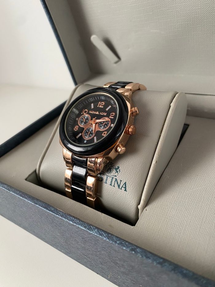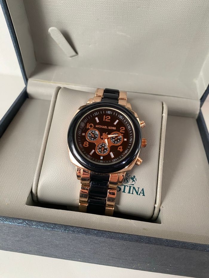 Sublime montre Michael Kors noir et rose gold Montre quartz Taille du cadran 40cm En parfait état. + 1 pile offerte