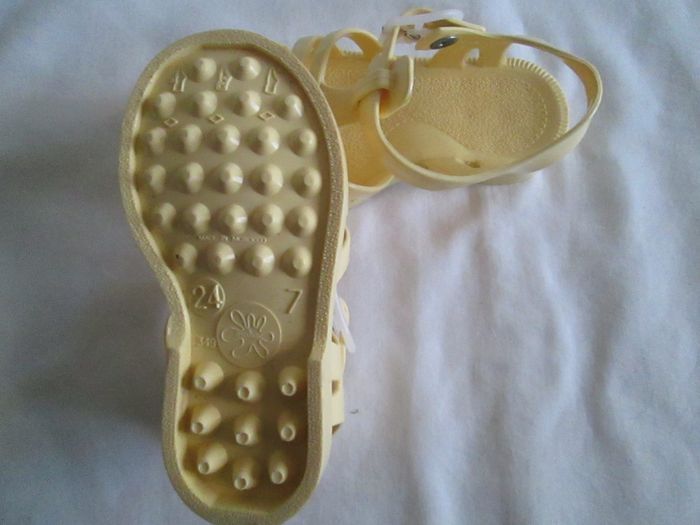 Vends sandales jaunes Méduse. Pointure 24, mais elles taillent petit. Comme neuves, portées une matinée. N'hésitez pas à consulter mes autres annonces.