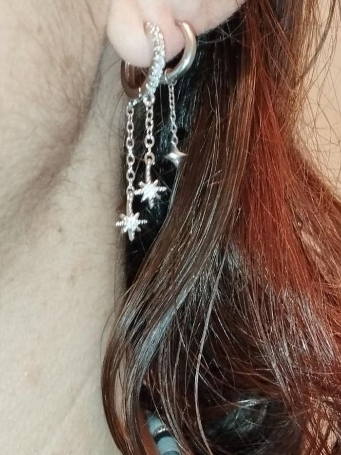 Paire de créoles argent strass charms étoiles - photo numéro 7
