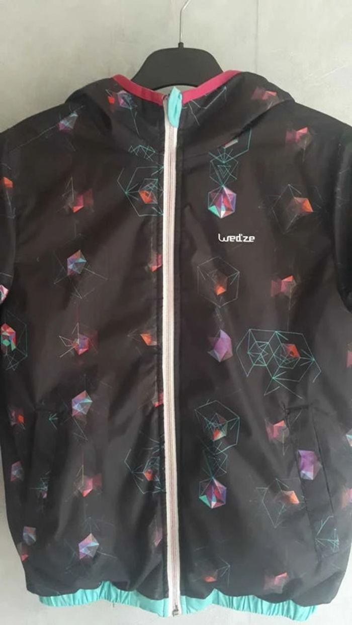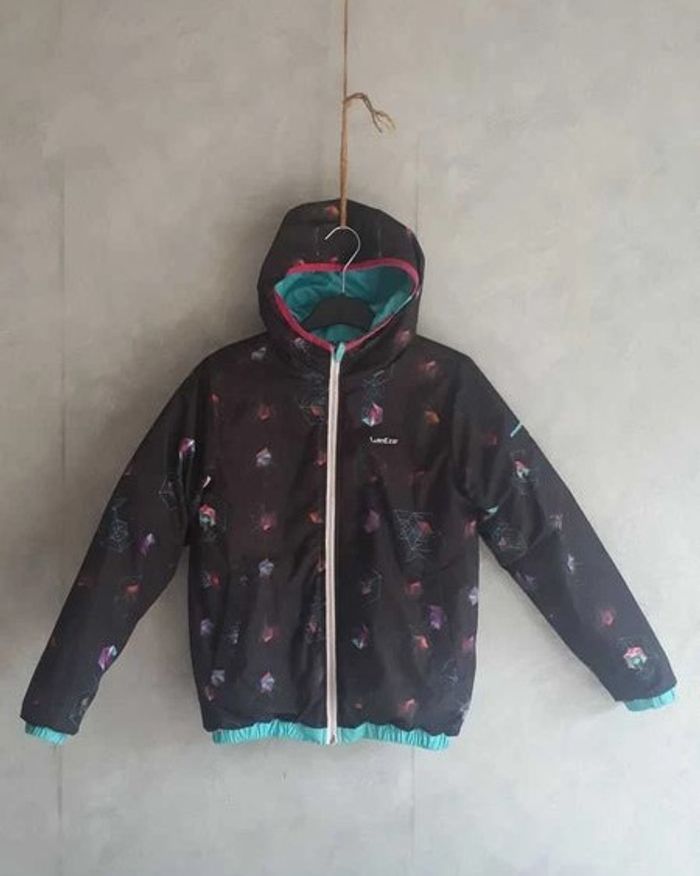 Manteau de ski fille réversible. 12 ans Légers frottements au niveau des poignets mais reste en très bon état. Une poche sur le bras pour le forfait.