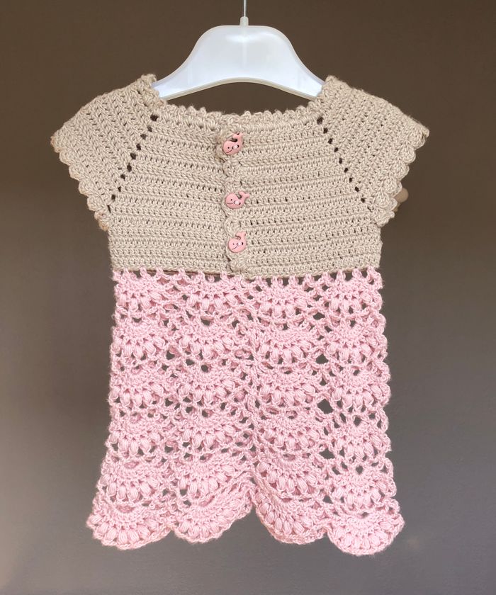 Ravissante robe réalisée au crochet, Pas de marque elle est faite maison, Taille 6 mois, Manches courtes. Le haut est beige foncé et le bas rose clair. Petits boutons roses en forme de baleine pour l’ouverture. En excellent état, comme neuve. 🌸 Vous aimez cet article ? N’oubliez pas de visiter le reste de mon dressing en filtrant les tailles.