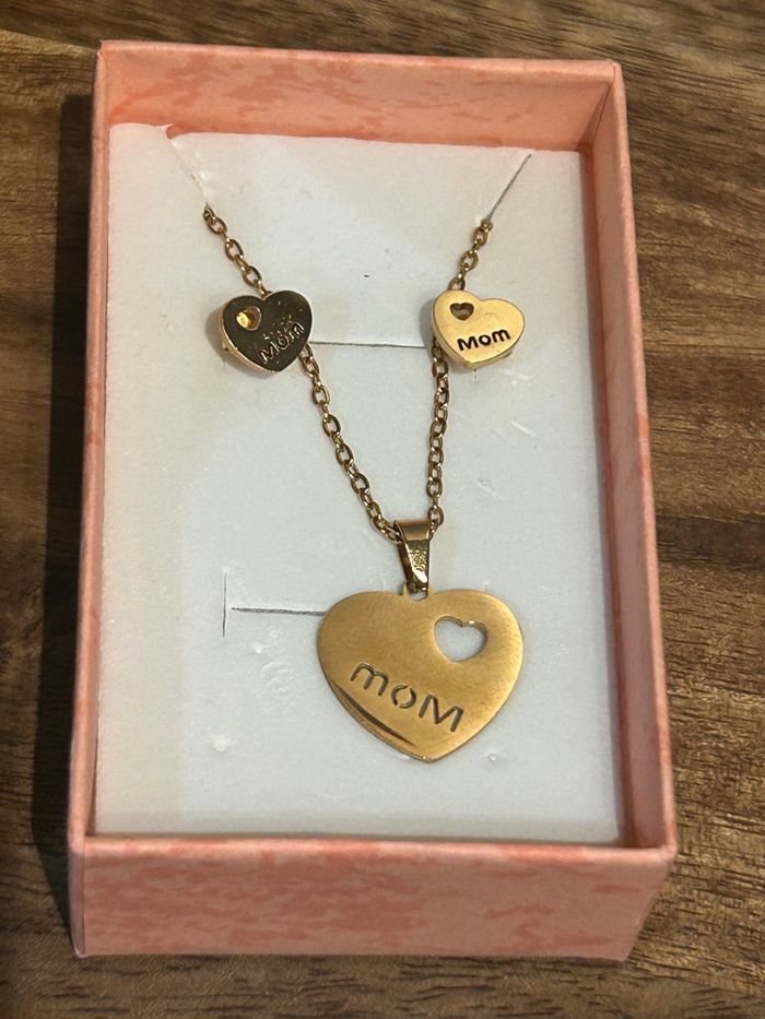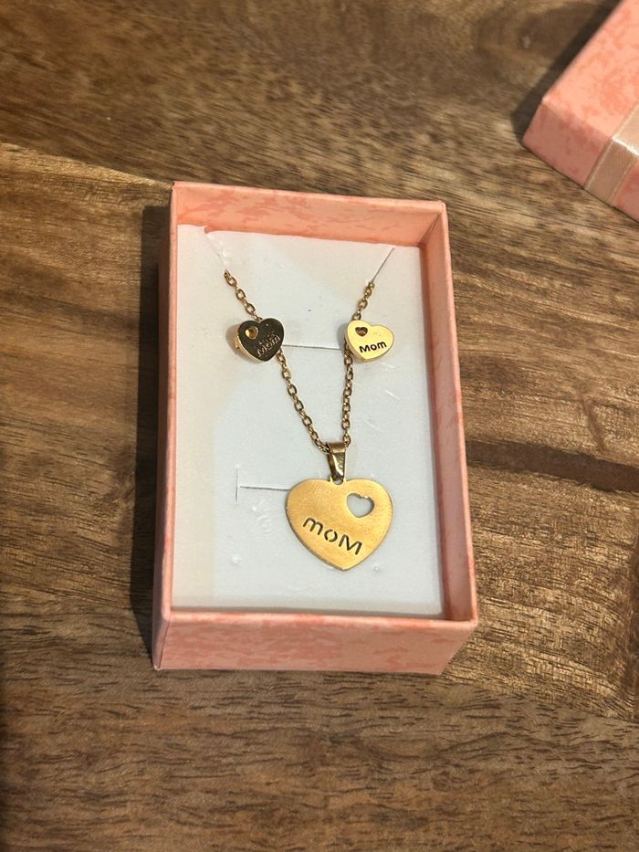 Collier « maman » parure boucles d’oreilles doré Idéal pour un cadeau