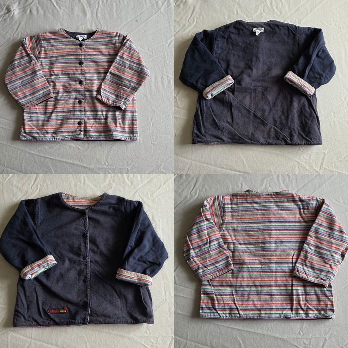 ​✨ ÉTAT : Bon état général. Le gilet a été porté mais les couleurs restent vives. Le pantalon bouloche légèrement par endroits et un ourlet a été recousu de manière propre, mais il reste très élégant. Le body est blanc éclatant sans tache. ​📏 TAILLE & COUPE : 9 mois (71 cm pour le gilet, 68-71 cm pour le reste). Le lot comprend : ​1 Gilet réversible rayé multicolore/bleu marine (Baby Mini). ​1 Pantalon en maille gris chiné avec poches festonnées (Tartine et Chocolat). ​1 Body manches courtes blanc "Chat-lu !" (Gémo). ​🌿 MATIÈRE : Majorité coton. Matières douces et extensibles, idéales pour le confort de bébé. ​📦 LIVRAISON : Envoi via Mondial Relay (lockers), Shop2Shop ou Chronopost (point relais physique). ​🎁 Réductions sur les lots activées ! C'est le moment de craquer pour plusieurs pièces de grandes marques à petit prix.
