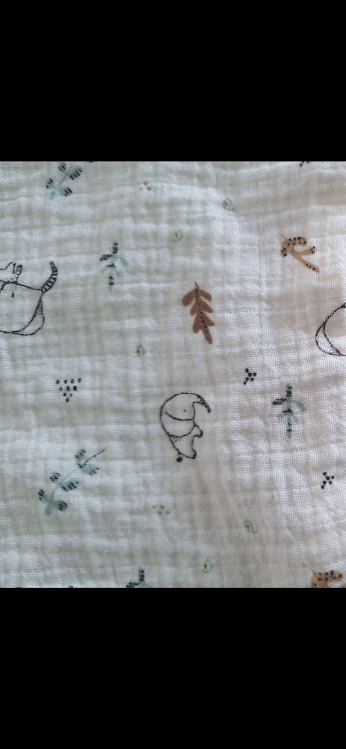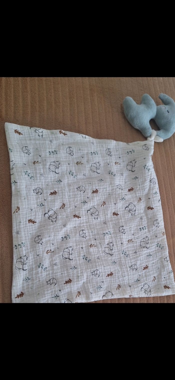 Doudou Éléphant Lange Orchestra Beige et Vert/Bleu Imprimés Feuilles et Éléphants Excellent Etat