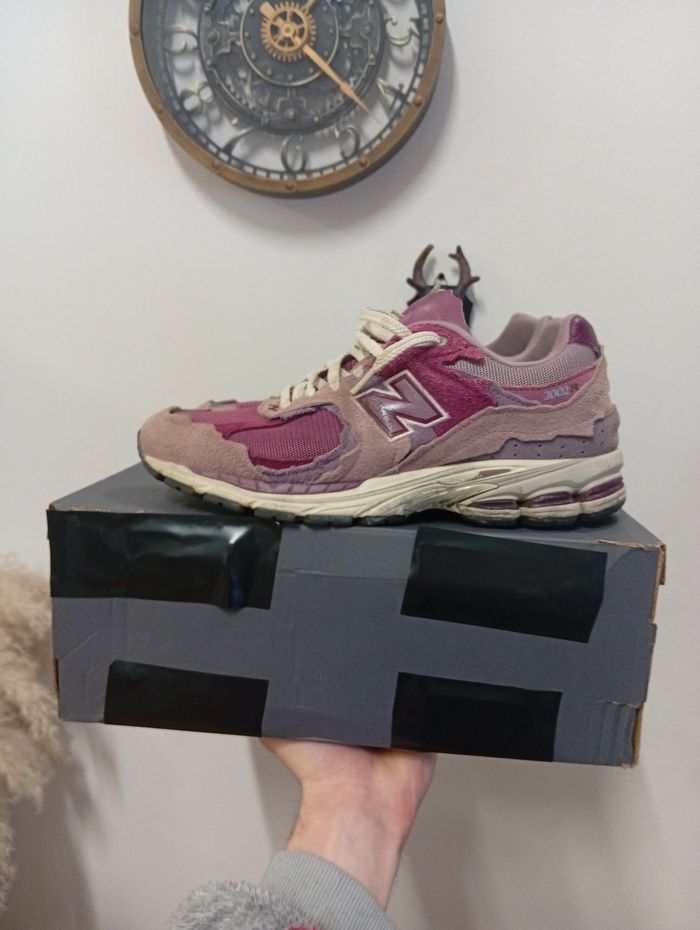 New balance protection pack pink, la paire a était porté plusieurs fois. Elle a quelque tâche et coup d'usure. La box a des coups du au double face que ma femme a mis dessus pour l'accrocher au mur... Envoie rapide et soigné. Paire authentique taille 42.5