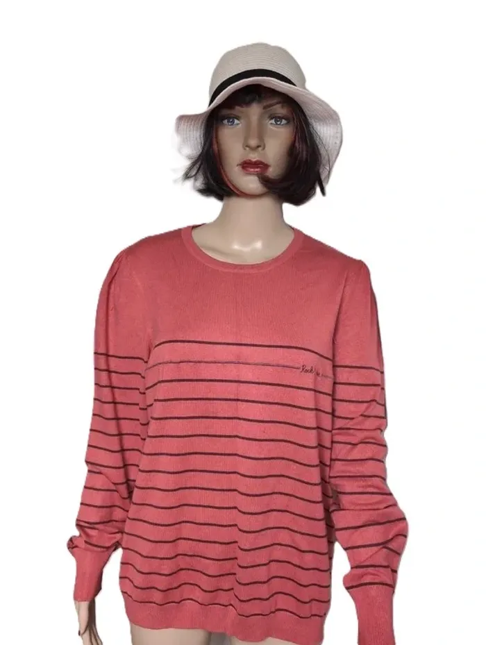 Pull chaleureux et féminin de la marque Camaïeu, idéal pour apporter une touche de couleur à votre tenue. Sa teinte corail rouge est mise en valeur par des lignes horizontales noires, pour un style à la fois simple et moderne. ⚠️ À noter : • Plus d’étiquette taille, mais correspond à une taille 46 • Quelques fils se retirent (voir photos) ✨ Détails du produit : • Marque : Camaïeu • Taille : 46 (#vavaneva46) • Couleur : corail rouge avec lignes noires • Coupe confortable, agréable à porter • Parfait avec un jean ou un pantalon noir 📦 Envoi rapide et soigné ❌ Maison non-fumeur #pull #Camaieu #corail #rayures #femme #mode #grandetaille #vavaneva46 #occasion #secondevie
